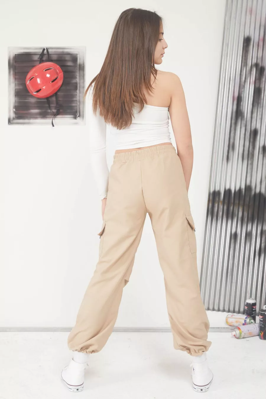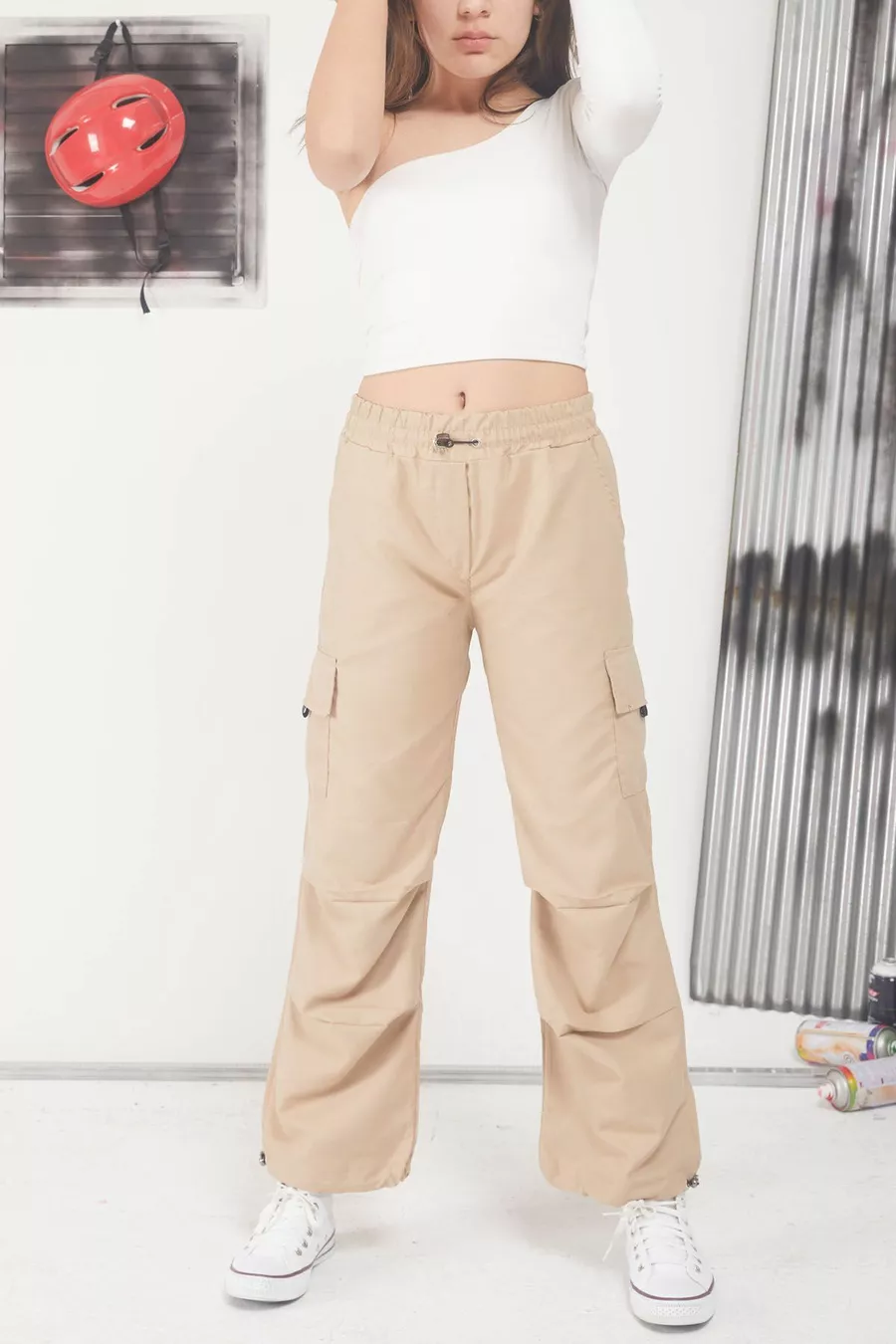 Cream Cargo Girls' Parachute Pants with Elastic Cuffs