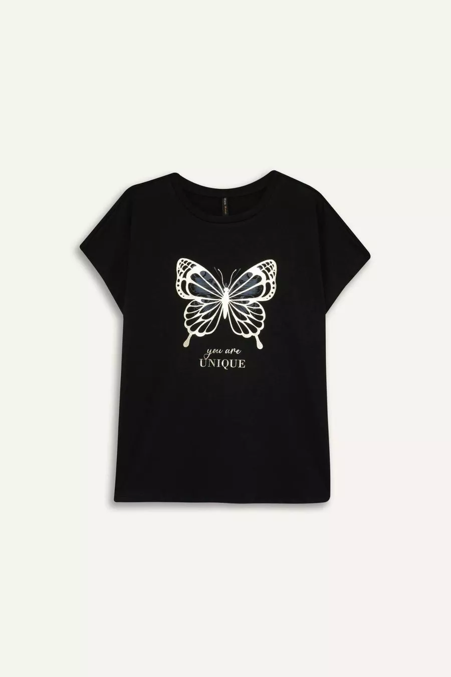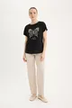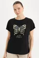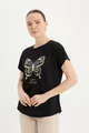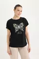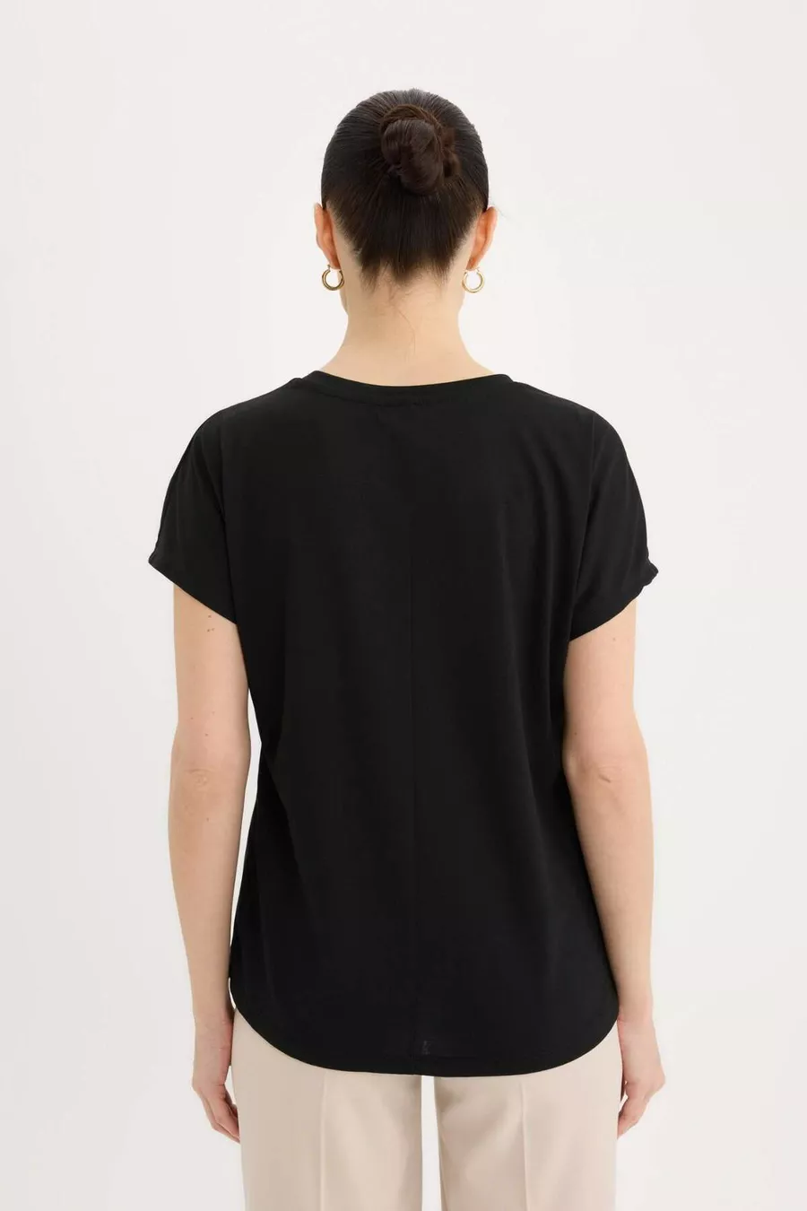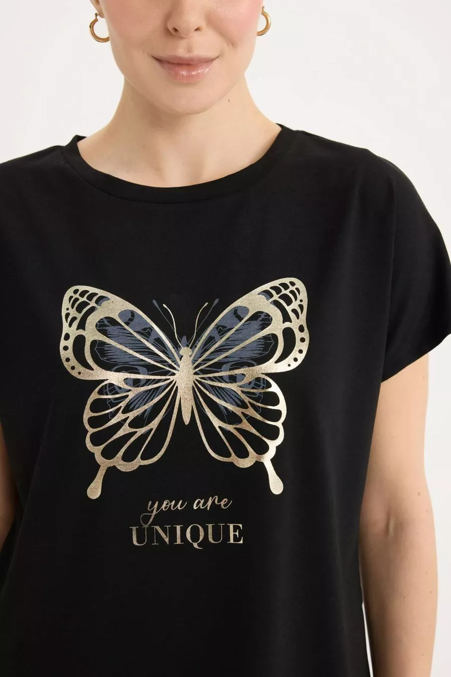 Pattern: Printed Fit: Regular Neck Type: Crew Neck Material: Viscose Fabric Type: Knit Sleeve Type: Batwing Sleeve Color: Black Package Content: 90 Technique: Digital Print Pocket: No Pocket Sleeve Length: Short Collection: Basic Length: Standard Occasion: Casual/Everyday Additional Feature: No Additional Feature Print/Embroidery Technique: Digital Print Sustainability Details: No Silhouette: Basic Persona: Traditional Material Composition: 35% Viscose, 65% Polyester Washing Instructions: Type 0 Season: Summer Origin: TR Box Condition: No box