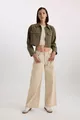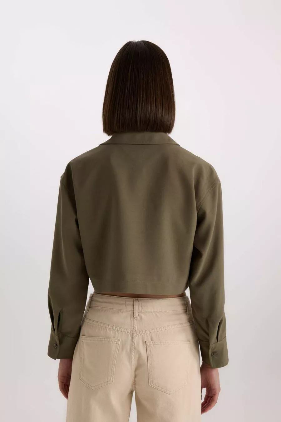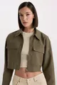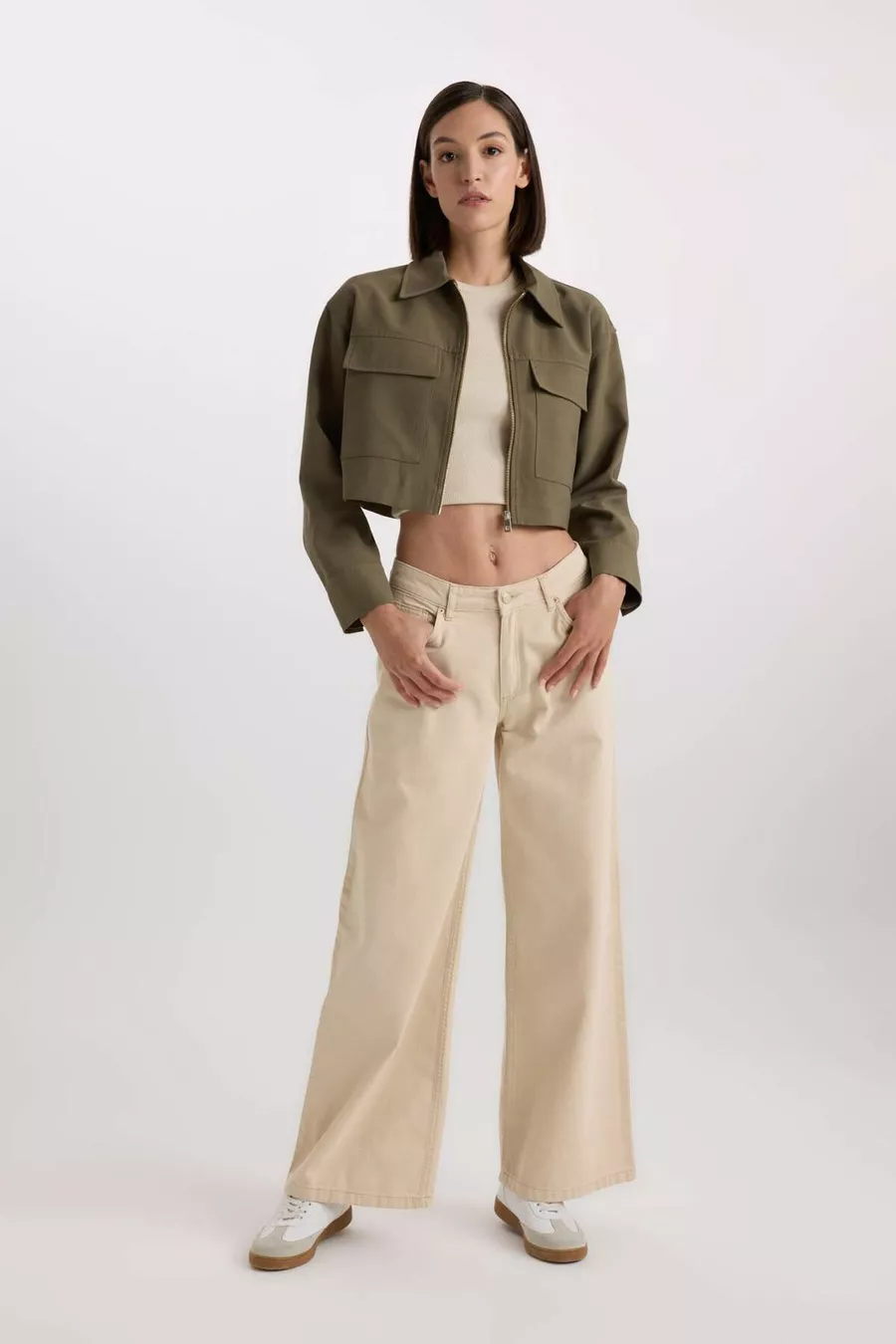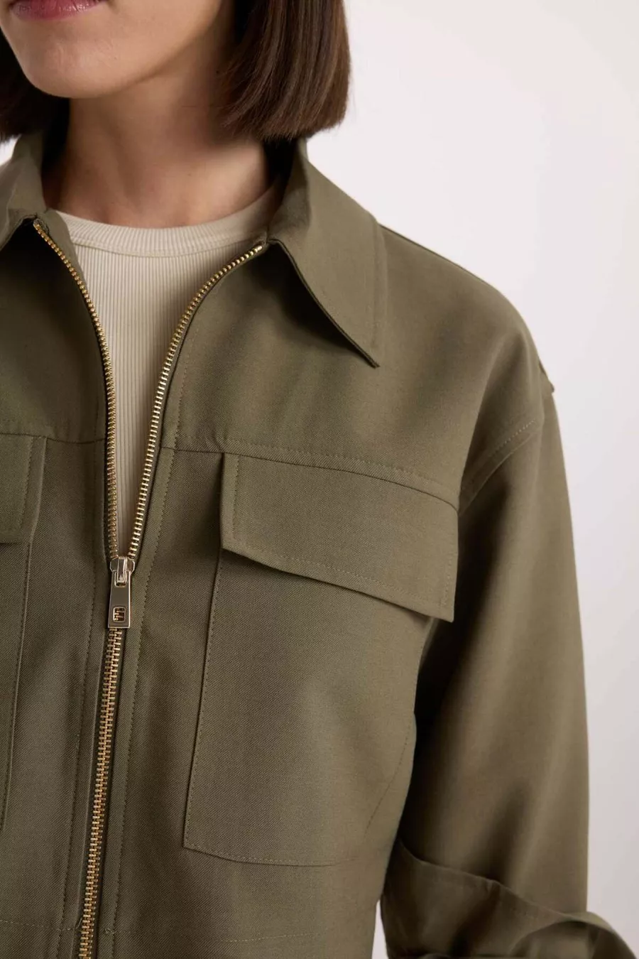Sleeve Type: Long Sleeve Pattern: Plain Fit: Crop Neck Type: Shirt Collar Material: Gabardine Fabric Type: Woven Color: Khaki Closure Type: Zippered Product Detail: Zipper Pocket: Double Pocket Sleeve Length: Long Lining: Unlined Length: Crop Silhouette: Crop Occasion: Casual Weave Type: Gabardine Sustainability Detail: No Belt/Strap: Without Belt Product Type: Plain Material Composition: 92% Viscose, 8% Polyester Washing Instructions: Type 2 Origin: TR Box Status: No Box
