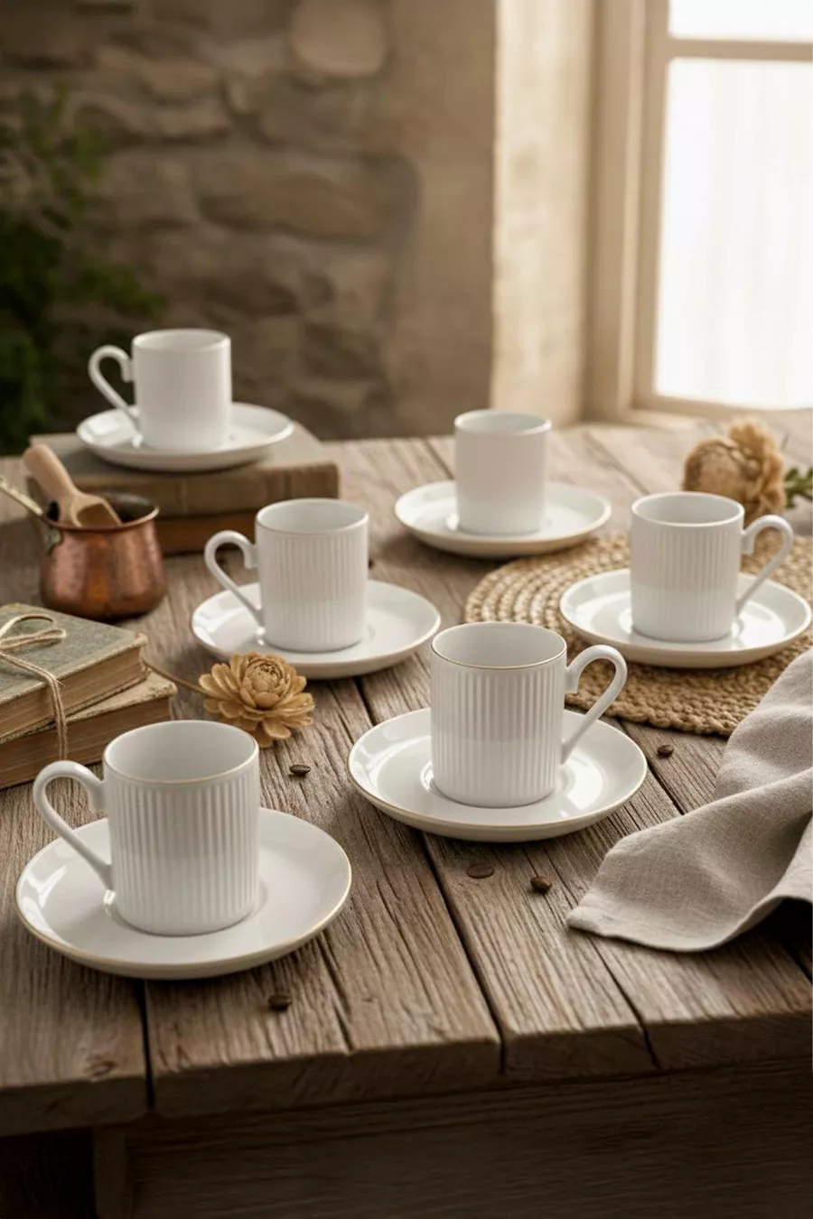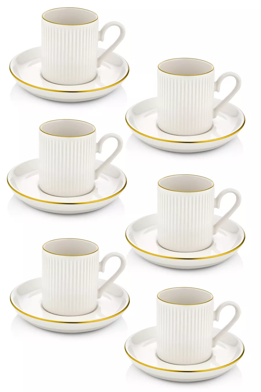Custom Design Porcelain Gold -Piece Coffee Cup Set for 6 People, Striped, ml - Coffee Cup