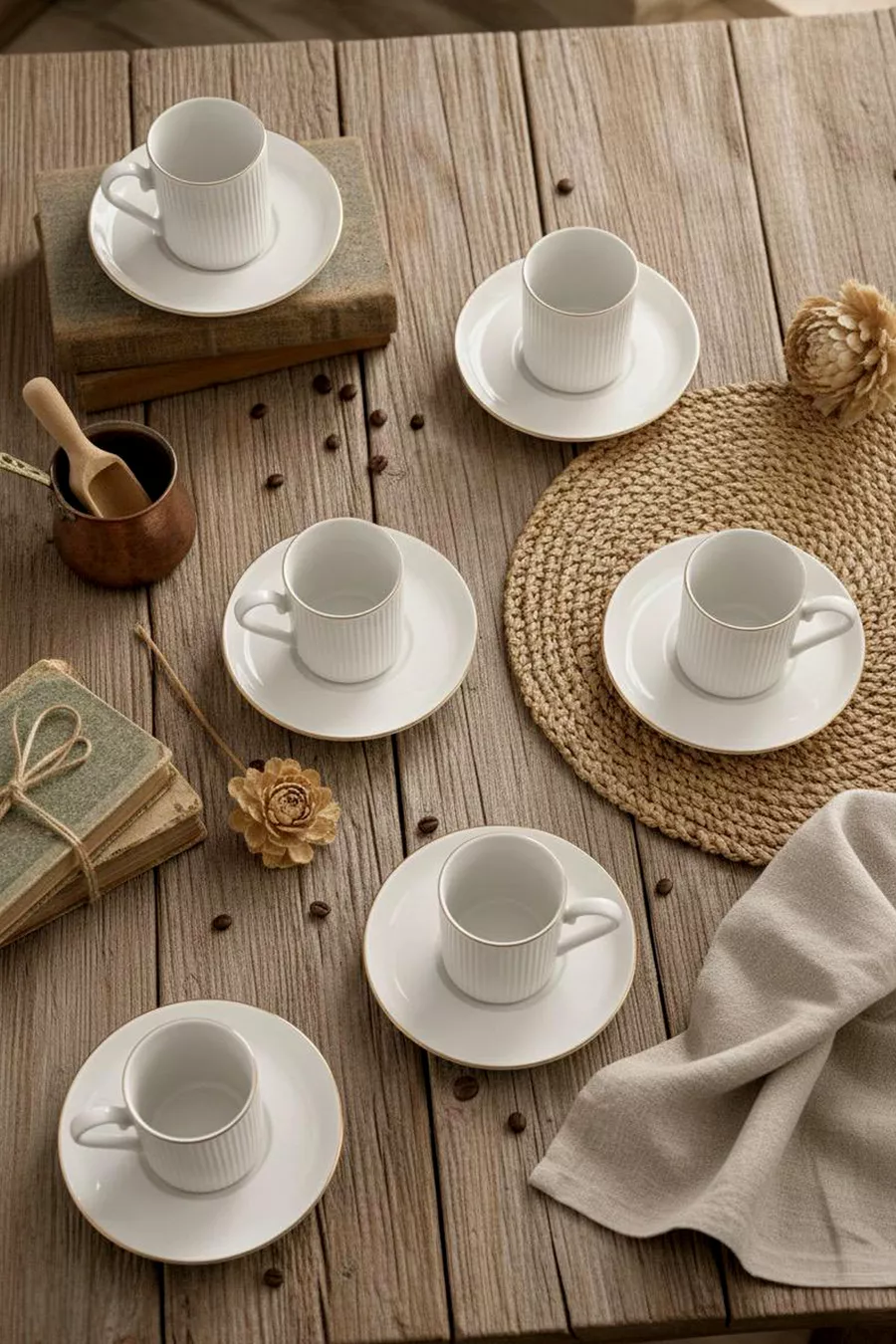 Number of Pieces: 12+ Color: White Capacity: For 6 People Volume: 100 ml Theme / Style: Modern Origin: Turkey Material: Gold Food Contact Symbol: Yes Care Instructions (Food Contact): Dishwasher safe.