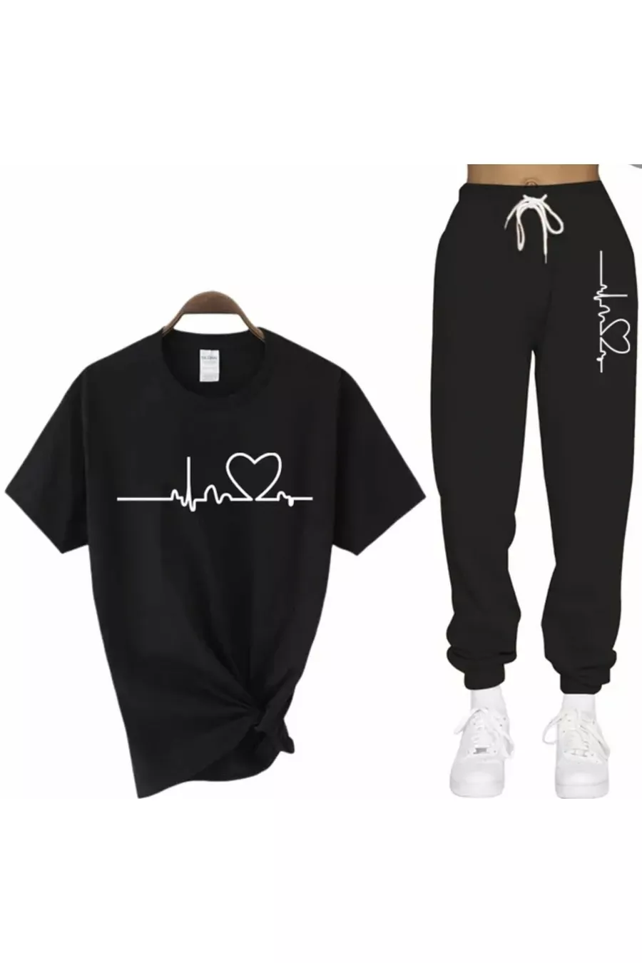 Custom Made White Heartbeat Print Short Sleeve Summer Women's Tracksuit