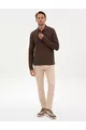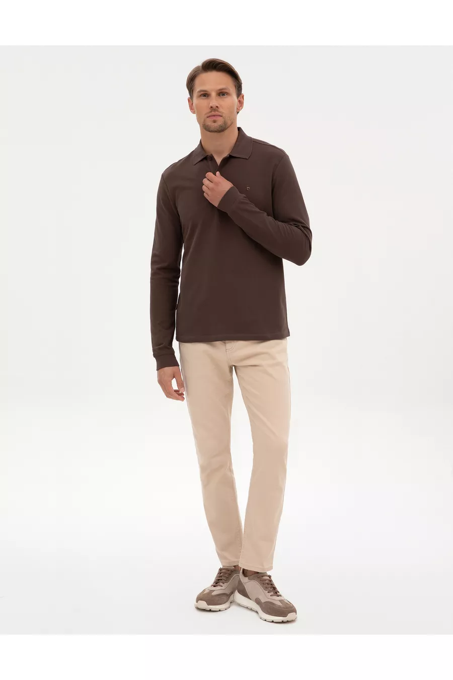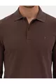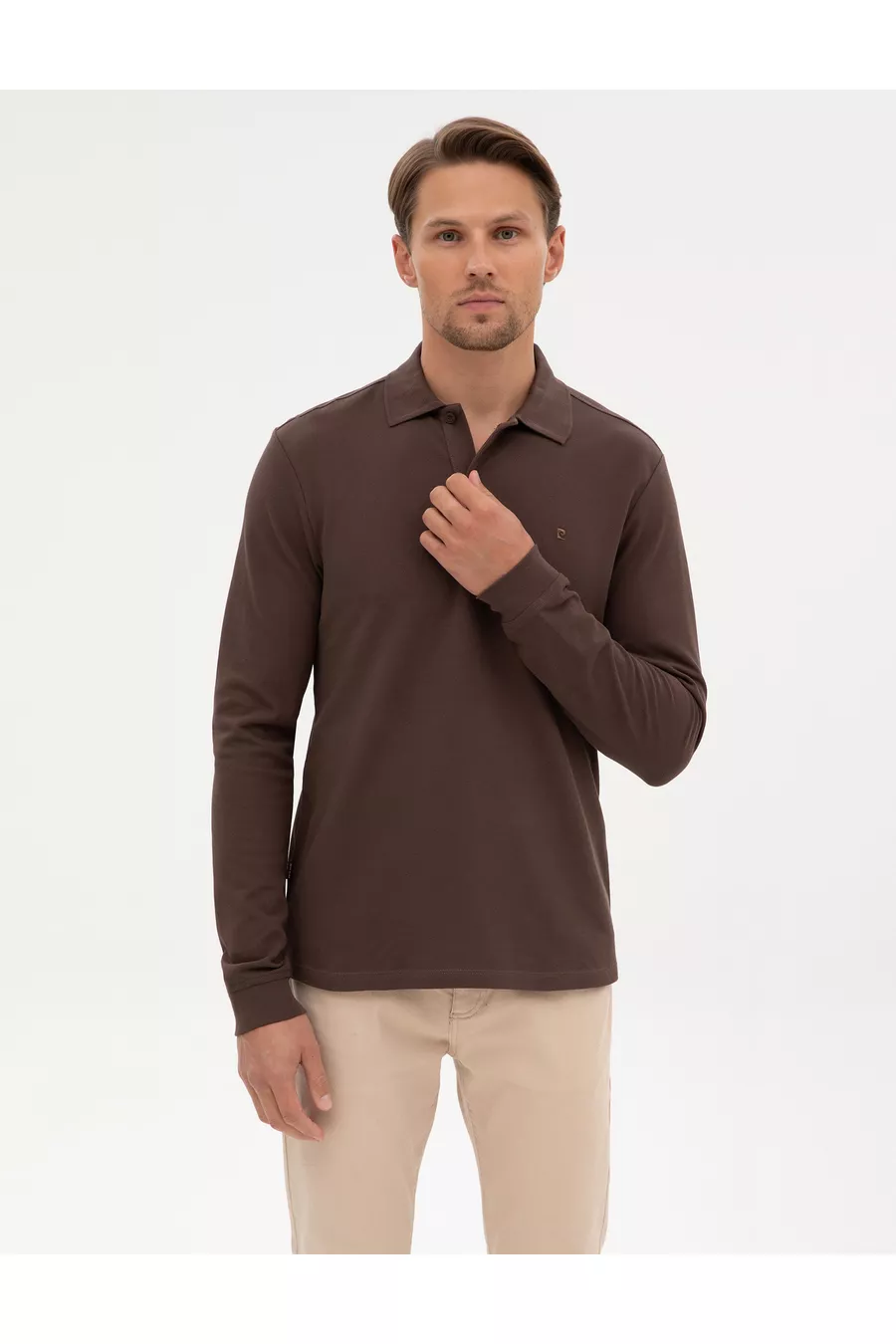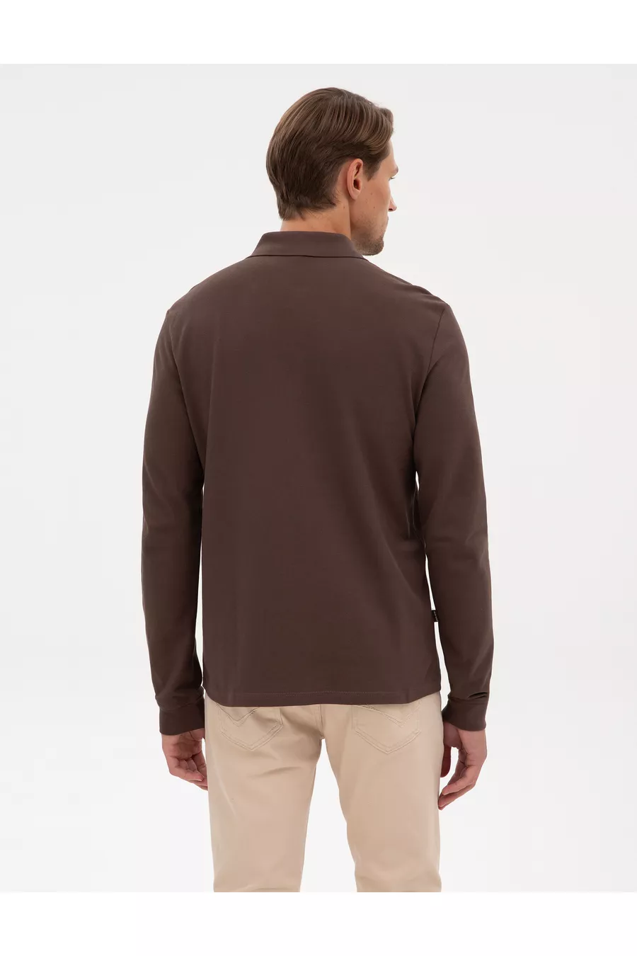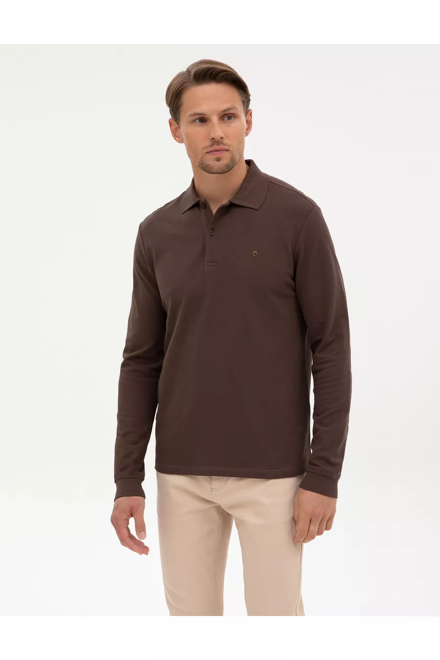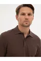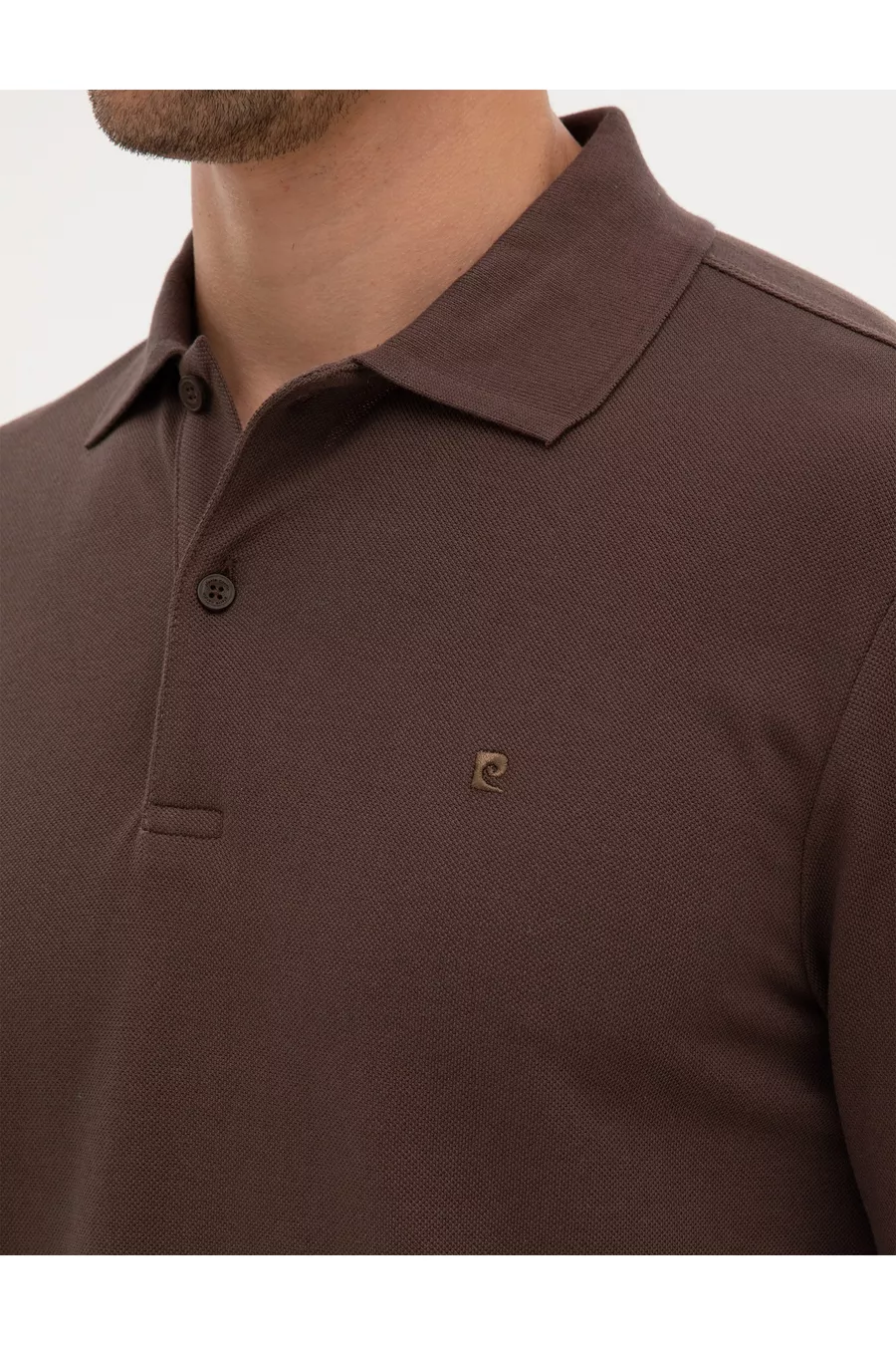 Dark Brown Slim Fit Non-Crease Polo Collar Basic Pique Sweatshirt