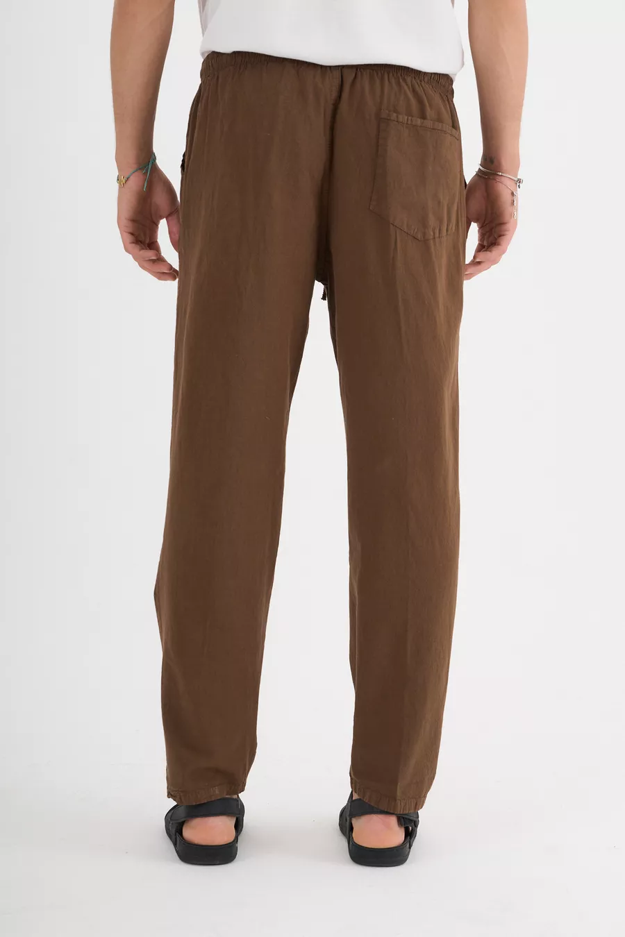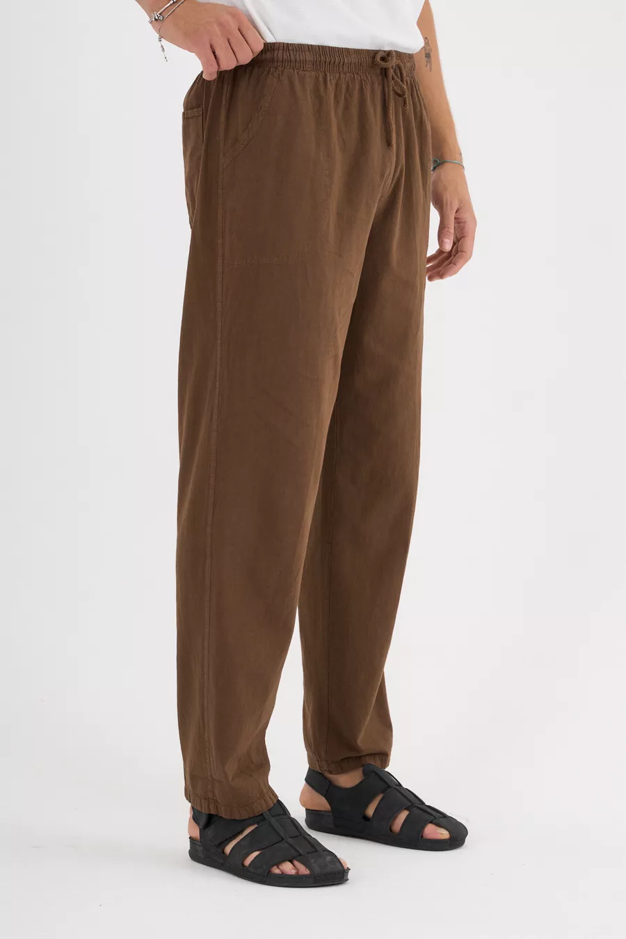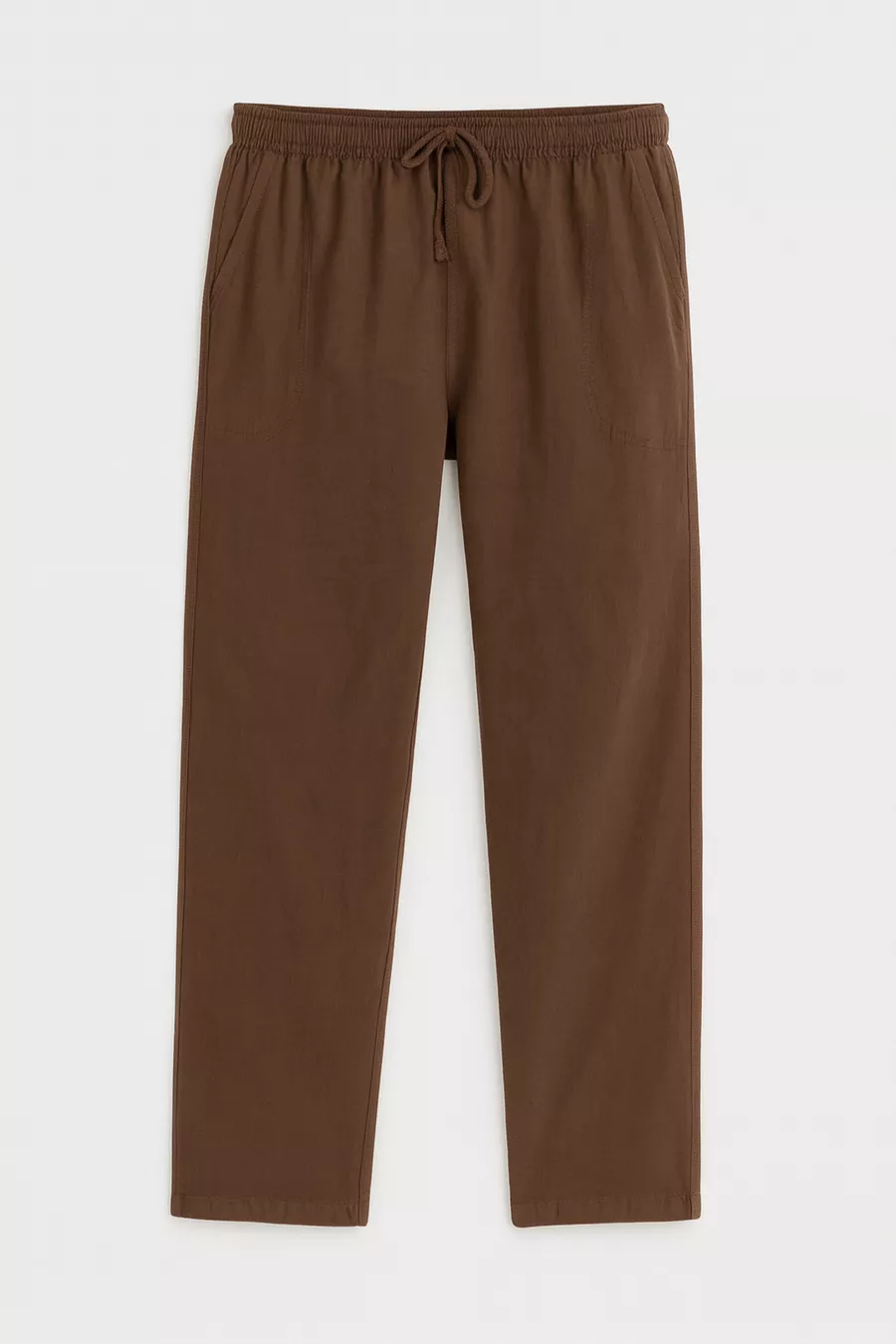 Material: Linen Fabric Type: Woven Pant Leg Type: Straight Leg Waist: Regular Waist Pattern: Plain Color: Brown Pocket: Double Pocket Lining: Unlined Length: Regular Silhouette: Relaxed Fit: Relaxed Weaving Type: Linen Look Belt/Strap: Without Belt Sustainability Detail: No Material Composition: 100% Cotton Washing Instructions: Type 1 Origin: TR Box Condition: No Box