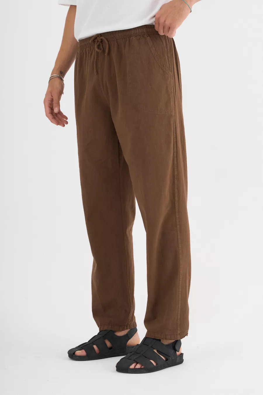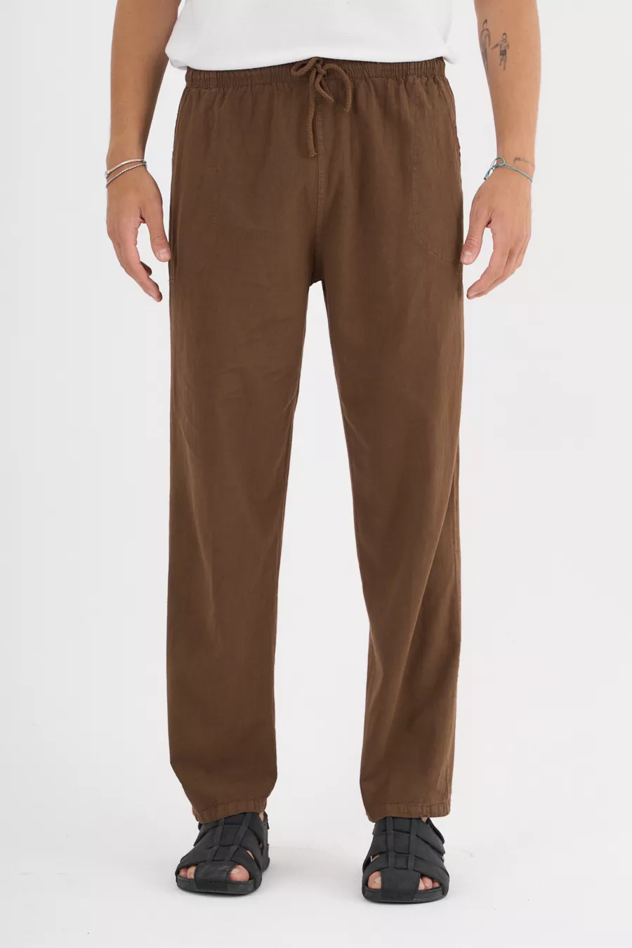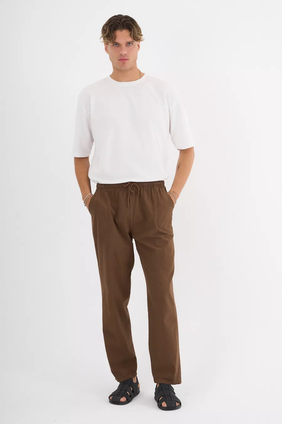 Material: Linen Fabric Type: Woven Pant Leg Type: Straight Leg Waist: Regular Waist Pattern: Plain Color: Brown Pocket: Double Pocket Lining: Unlined Length: Regular Silhouette: Relaxed Fit: Relaxed Weaving Type: Linen Look Belt/Strap: Without Belt Sustainability Detail: No Material Composition: 100% Cotton Washing Instructions: Type 1 Origin: TR Box Condition: No Box