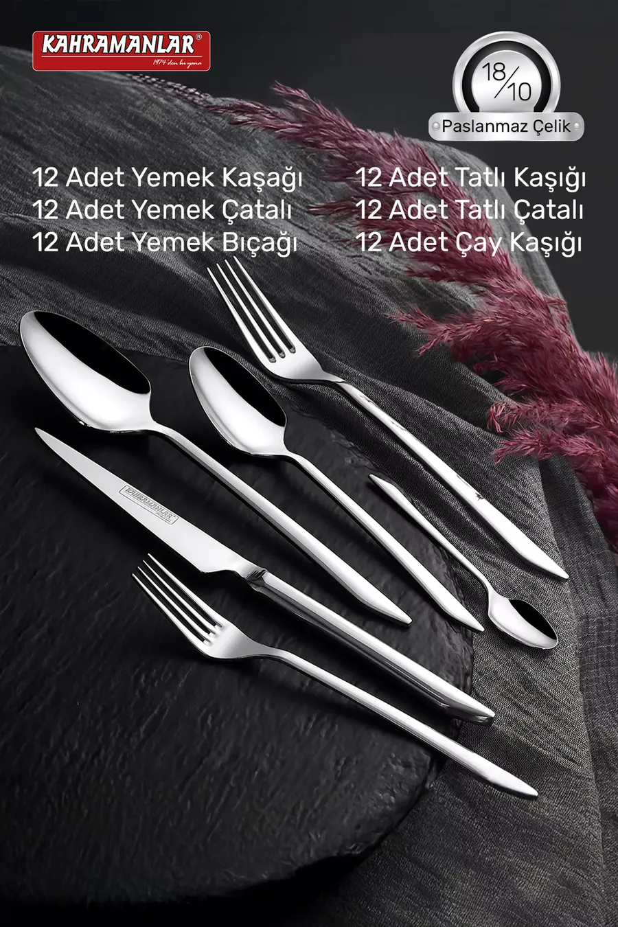 Material: Stainless Steel Number of Pieces: 72 Color: Silver Capacity: For 12 People Product Type: Knife Set Origin: TR Warranty Period: 2 Years Care Instructions (Food Contact): Follow the specific care instructions for the product to maintain its lifespan.
