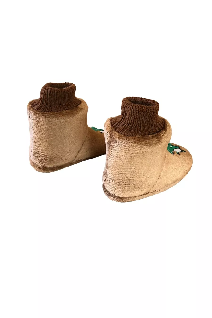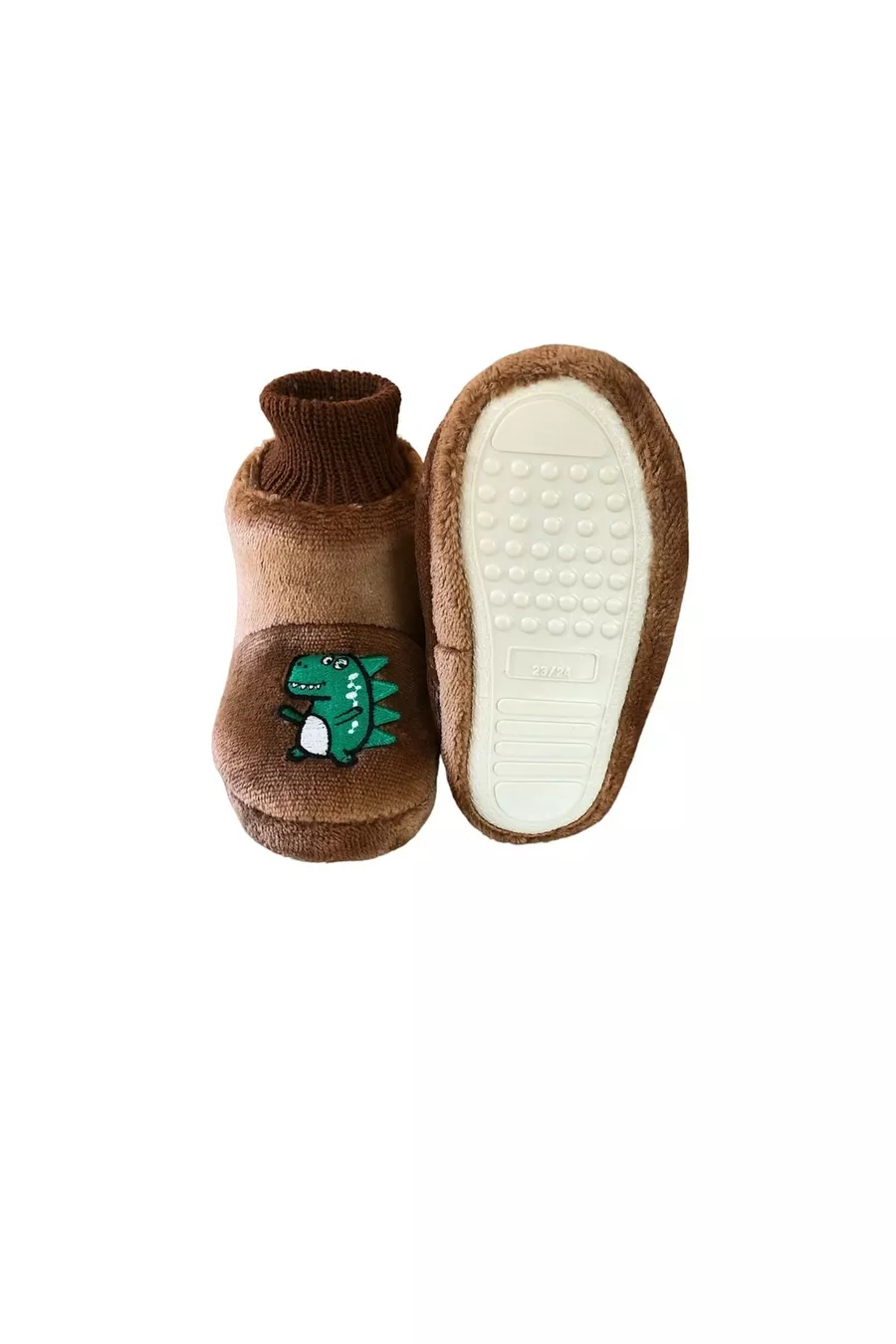 Dino Brown Turtleneck Boys' Slippers- Home Shoes- Non-Slip Sole