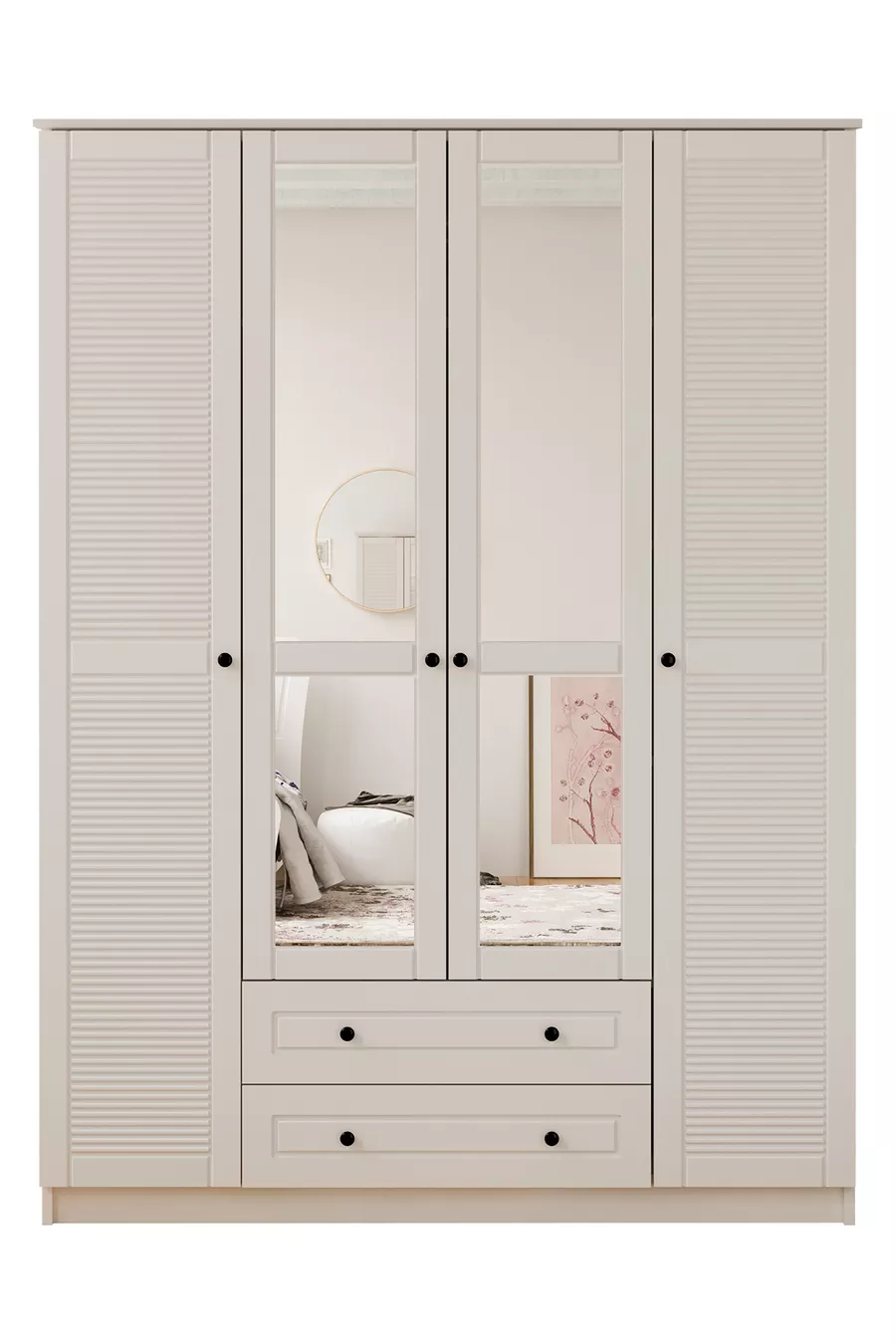 Function: With Lid Color: White Width: 140 cm Depth: 52 cm Number of Lids: 4 Body Material: Particleboard Mirror Function: Mirrored Warranty Period: 2 Years Style: Scandinavian Theme / Style: Scandinavian Origin: TR Feature: With Drawer