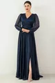 This product will be shipped by \xa0 PULLIMM\xa0. More than 5 stocks are offered to be sold at the campaign price. The seller determines the sales price of the product you have examined. A product can be sold by more than one seller. The sellers of the products offered for sale by more than one seller are ranked according to the price they set for the product, the seller ratings, the delivery status, the promotions in the products, whether the shipping is free or not, and whether the products can be delivered with fast delivery, the stock and categories of the products. A maximum of \xa010 pieces of this product can be ordered.\xa010 units can be ordered by Queenmadam.\xa0This limit is not valid for corporate orders, and different limits can be set for corporate orders. Free returns within 15 days. Click \xa0 for more information. Double-breasted Neckline Long Sleeve Belted Glitter Dress 13369
