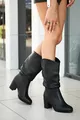Pattern: Plain Lining Material: Textile Material: Synthetic Leather Heel Height: Mid Heel (5-9 cm) Heel Type: Block Heel Color: Black Closure Type: Slip-on Sole Material: Rubber Upper Material: Synthetic Leather Insole Material: Textile Sustainability Detail: No Persona: Young Additional Feature: No Additional Feature Material Composition: 100% Synthetic Leather Washing Instructions: NOT SUITABLE FOR MACHINE WASHING Fabric Type: Synthetic Leather Collection: Young Occasion: Casual/Daily Product Detail: Synthetic Leather Origin: TR Toe Type: Round Box Status: No Box Season: Winter Outer Material: Synthetic Leather