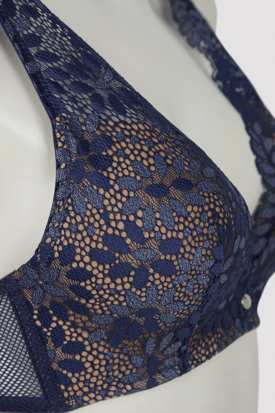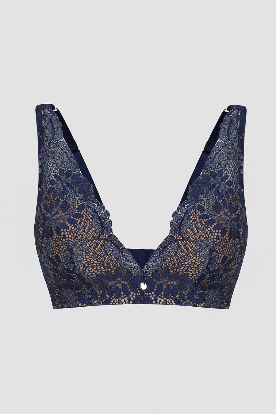 Sustainability Detail: Yes Material: Lace Style: Wireless Sleeve Length: Strappy Color: Navy Package Contents: Single Product Detail: With Bow Pattern: Embroidered / Embellished Product Type: Plain Cup: Sewn Cup Collection: Lingerie Neck Type: Strappy Neck Fabric Type: Knit Weave Type: Lace Persona: Sexy Additional Feature: Push up Silhouette: Bustier Material Composition: Lace Occasion: Casual/Daily Top Silhouette: Bustier Washing Instructions: Normal Origin: TR Box Condition: No box Number of Pieces: 1
