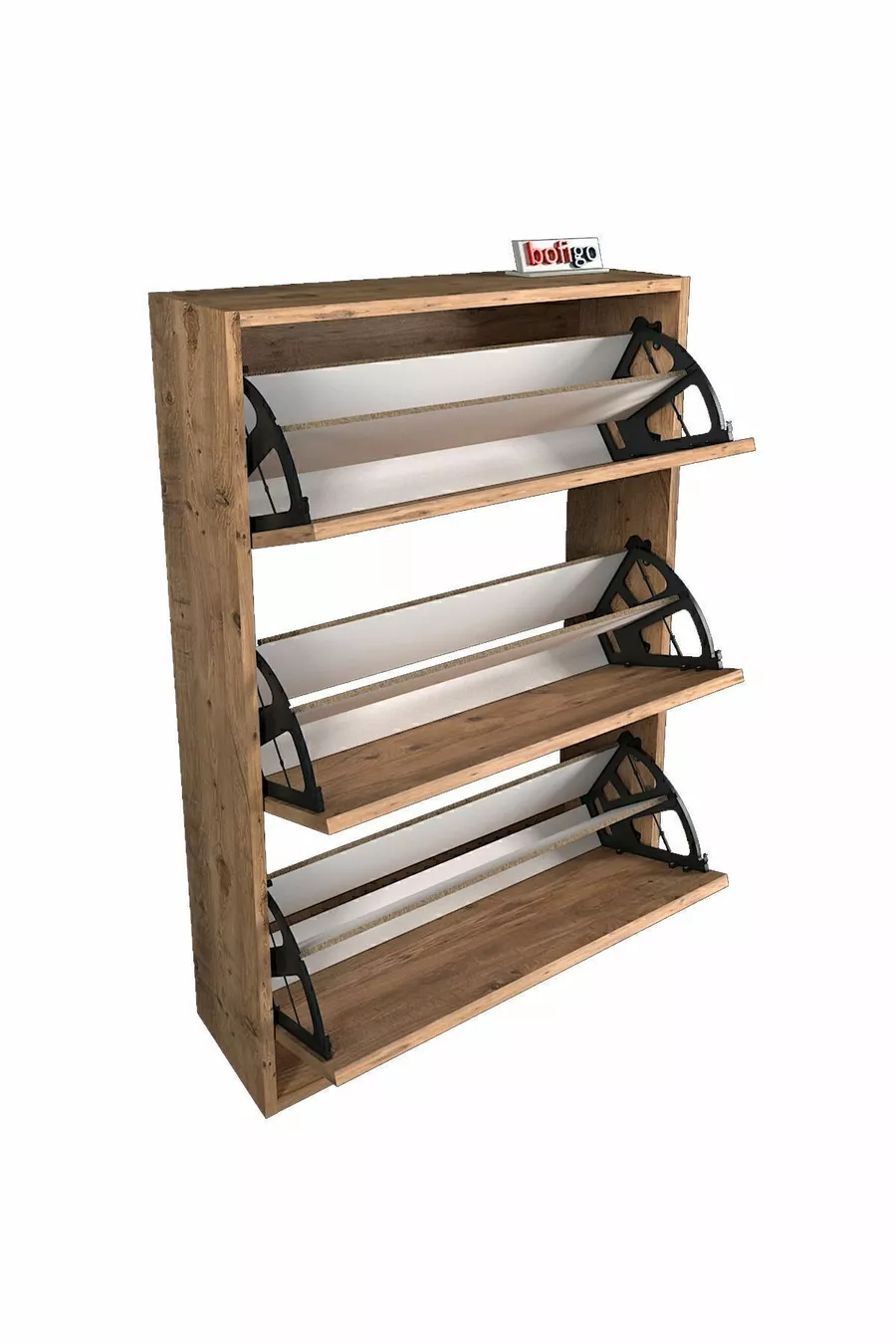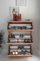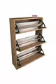 Drop-Front Shoe Cabinet Sliding Shelf Shoe Cabinet 3-Compartment Pine Shoe Cabinet