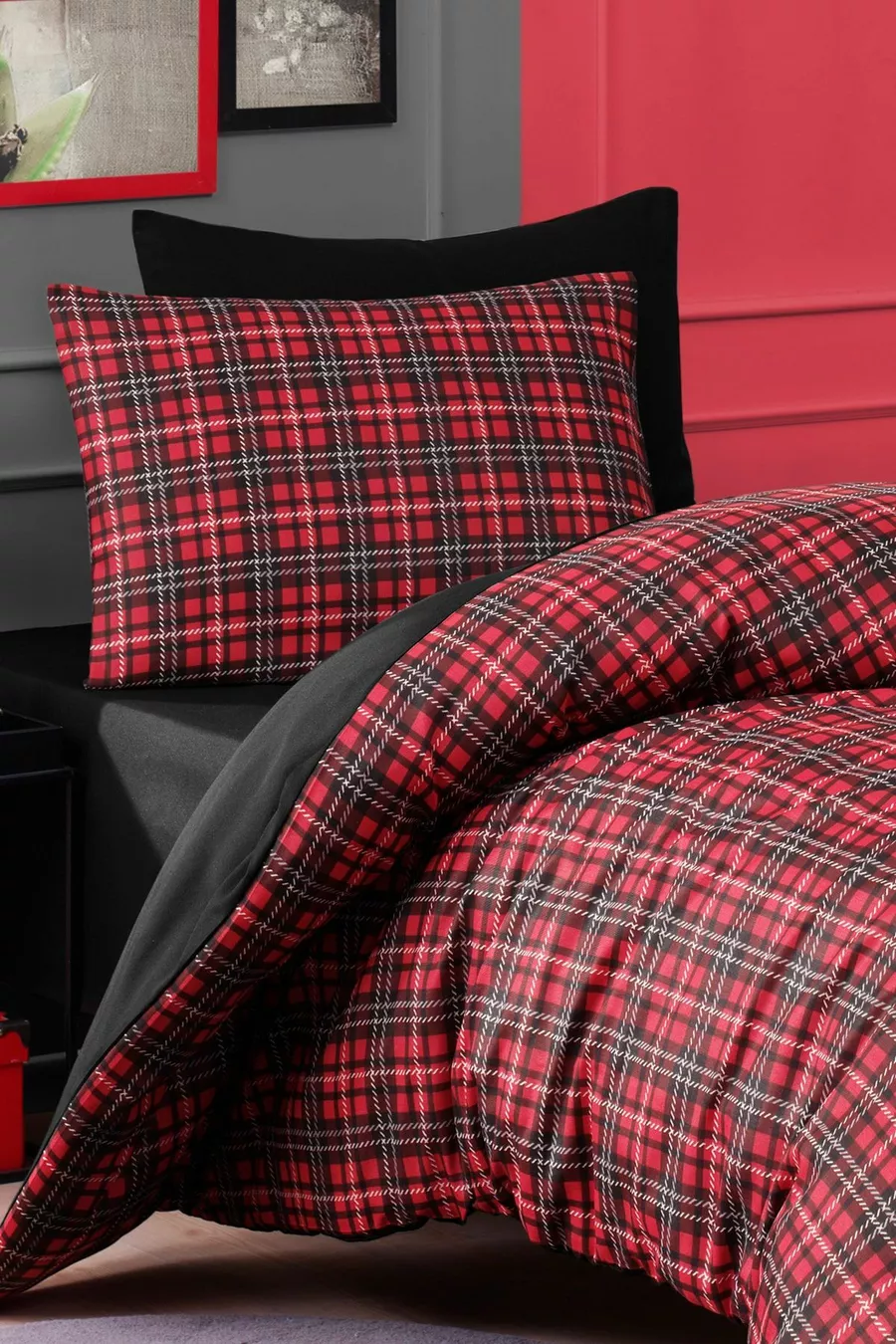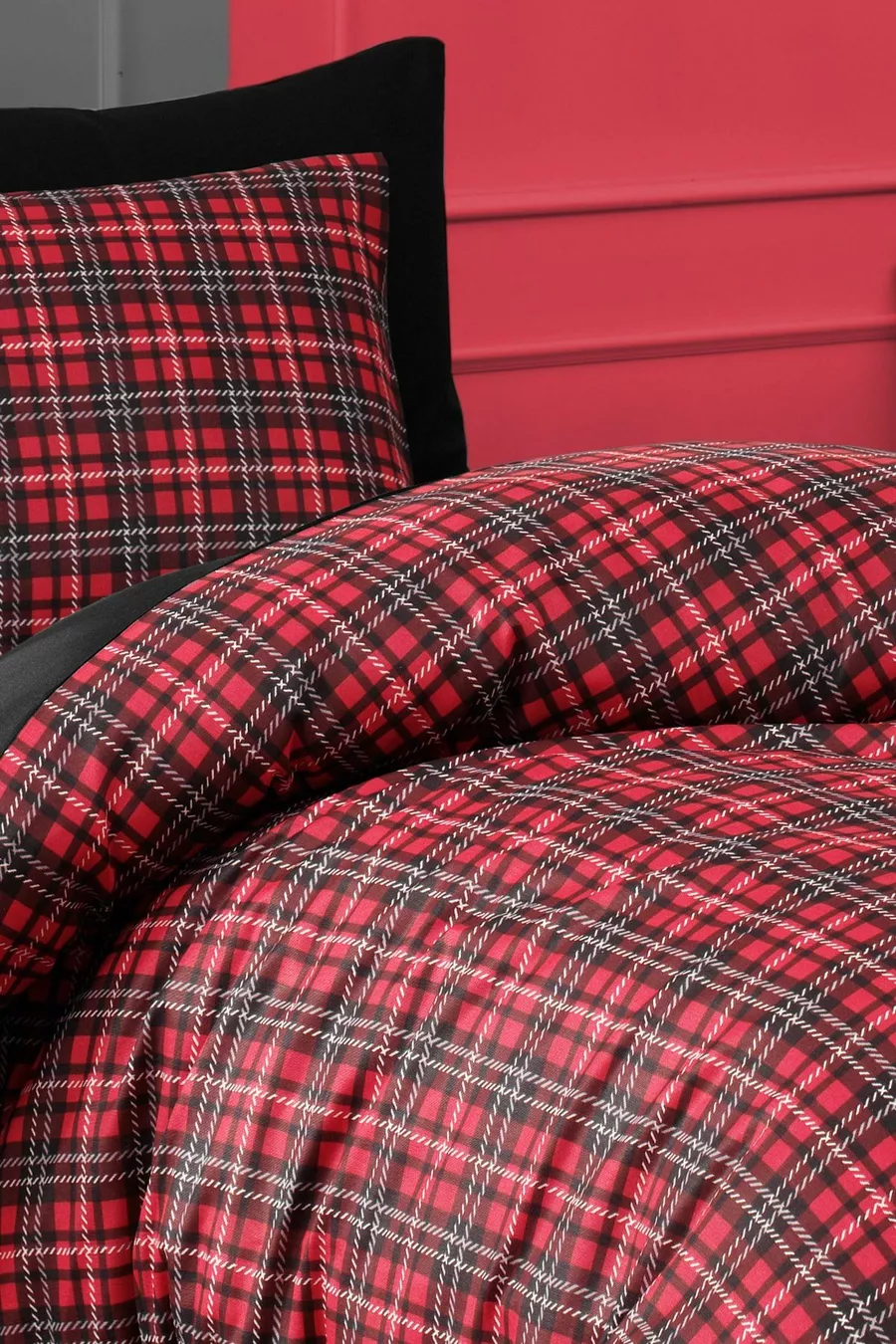Easy Ironing Duvet Cover Set Single Size Scottish Red