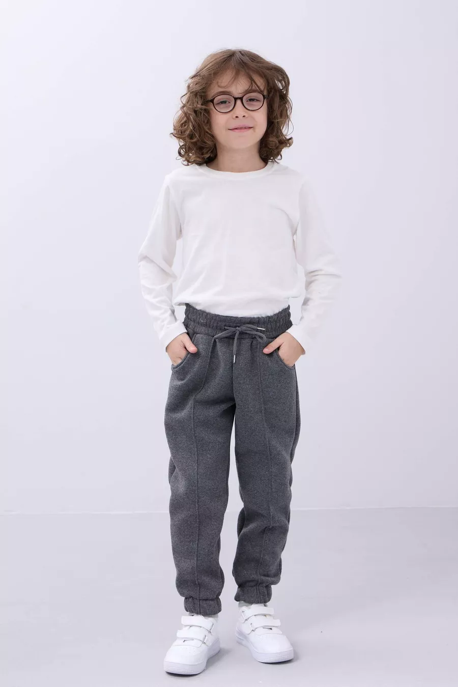 Elastic, Lined, Pocketed, Comfortable Unisex Kids Sweatpants Anthracite