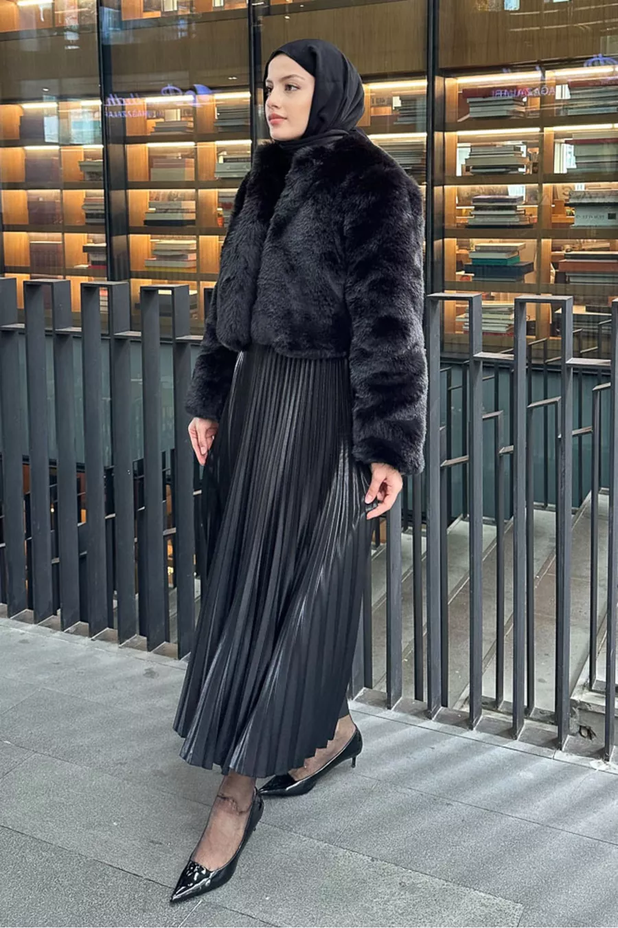 Pattern: Pleated Silhouette: Pleated Design: Textured Thickness: Medium Fabric Type: Woven Material: Cotton Polyester Color: Black Product Detail: Faux Leather Collection: Modest Clothing Waist: Elastic Pocket: No Pockets Additional Feature: Elastic Waist Weaving Type: Faux Leather Length: Maxi Belt/Sash Status: Without Belt Closure Type: Elastic Sustainability Detail: No Lining Status: Unlined Persona: Sexy Occasion: Casual Material Composition: 100% Satin Washing Instructions: Type 1 Season: All Seasons Origin: TR Box Availability: No Box Package Content: Single