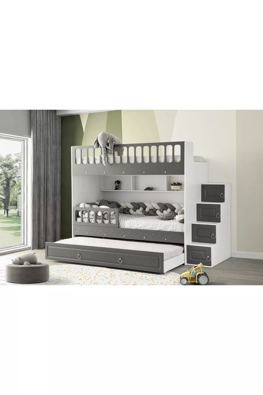 Color: White Material: MDF Size: Single Dimensions: 90 x 190 Warranty: 2 Years Style: Classic Theme / Style: Modern Bunk Bed: Yes Origin: Turkey Feature: Solid