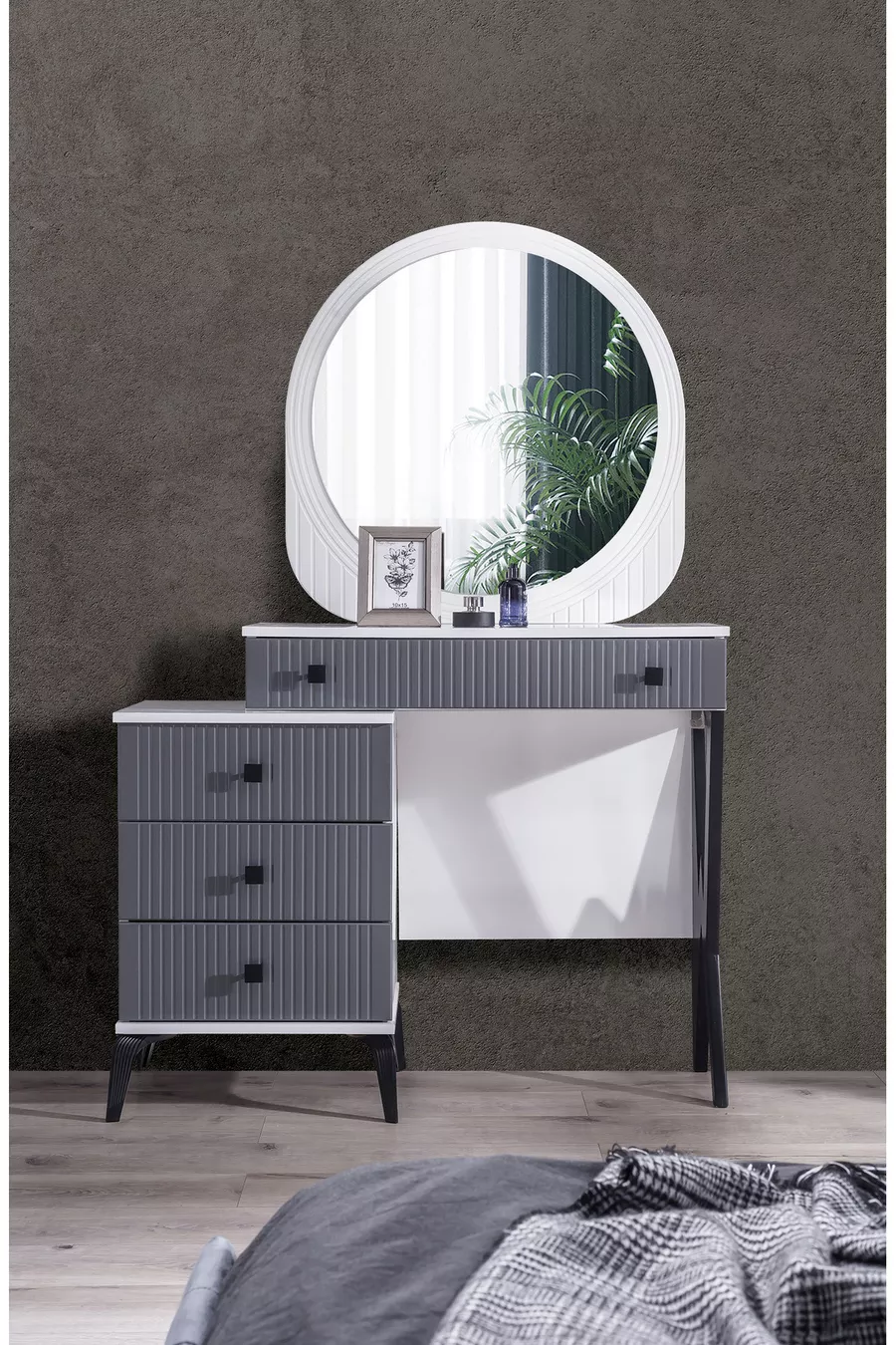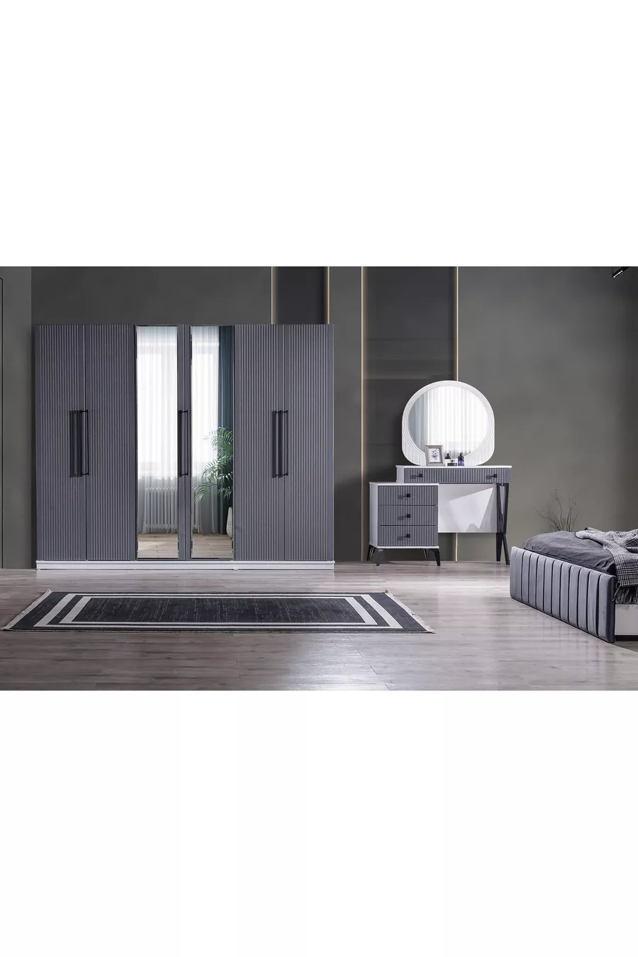 Set Contents: Bed + 2 Nightstands + Dresser + Wardrobe + Mirror