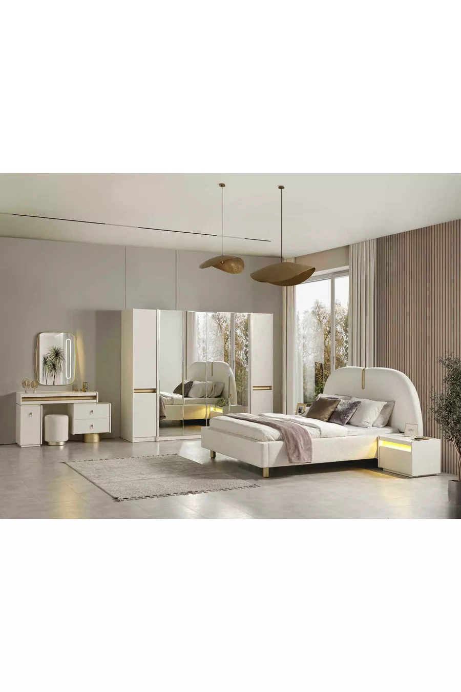 Set Contents: Bed + 2 Nightstands + Dresser + Wardrobe