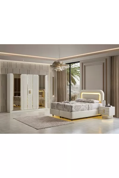 Set Contents: Wardrobe + 2 Nightstands + Dresser + Bed Headboard