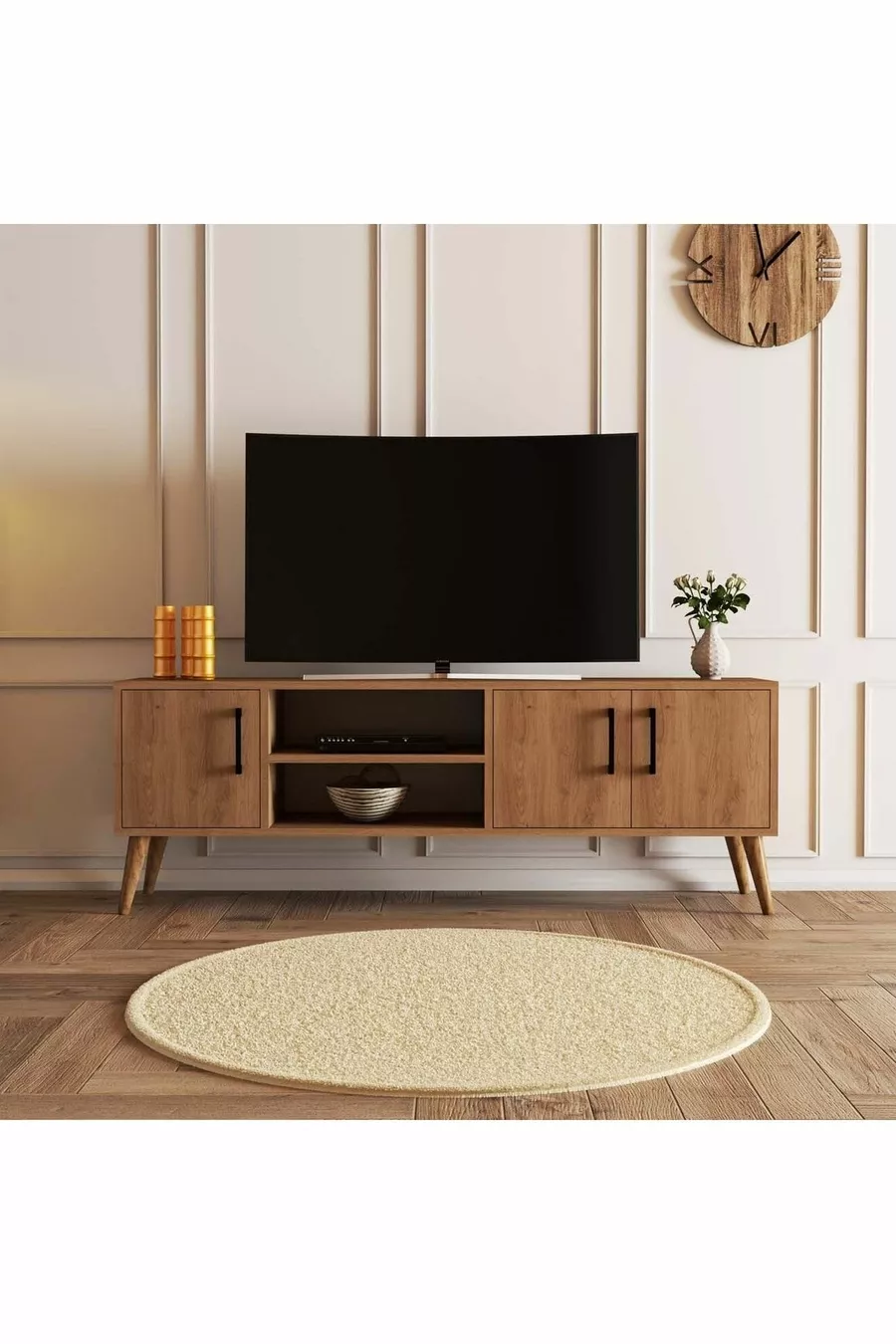 Material: Particleboard Feature: With Cabinet Color: Brown Size/Dimension: 150 x 350 Height: 53 cm Width: 150 cm Depth: 35 cm Warranty Period: 2 Years Style: Scandinavian Theme / Style: Scandinavian