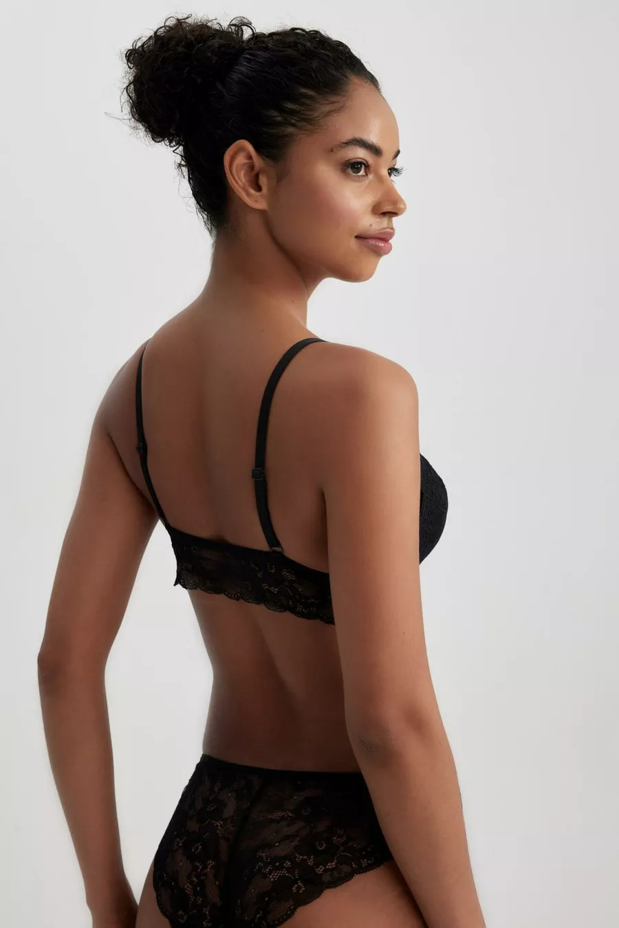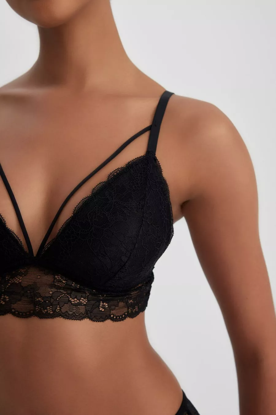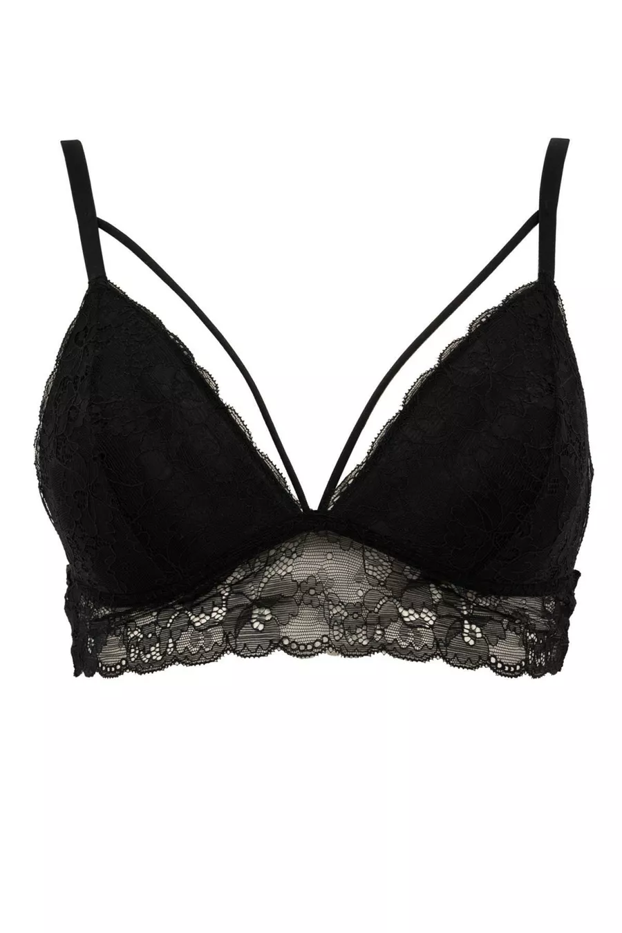 Material: Polyamide Sustainability Detail: No Fit: Bralette Sleeve Length: Strappy Color: Black Package Contents: Single Product Detail: Lace Detail Pattern: Solid Product Type: Solid Cup: Unlined Collection: Lingerie Neckline Type: Sweetheart Neckline Fabric Type: Knitted Weaving Type: Lace Persona: Sexy Additional Feature: No Additional Feature Silhouette: Bralette Material Composition: 87% Polyamide, 13% Elastane Occasion: Casual/Daily Top Silhouette: Bralette Washing Instructions: Type 4 Origin: China Box Condition: No Box Number of Pieces: 1