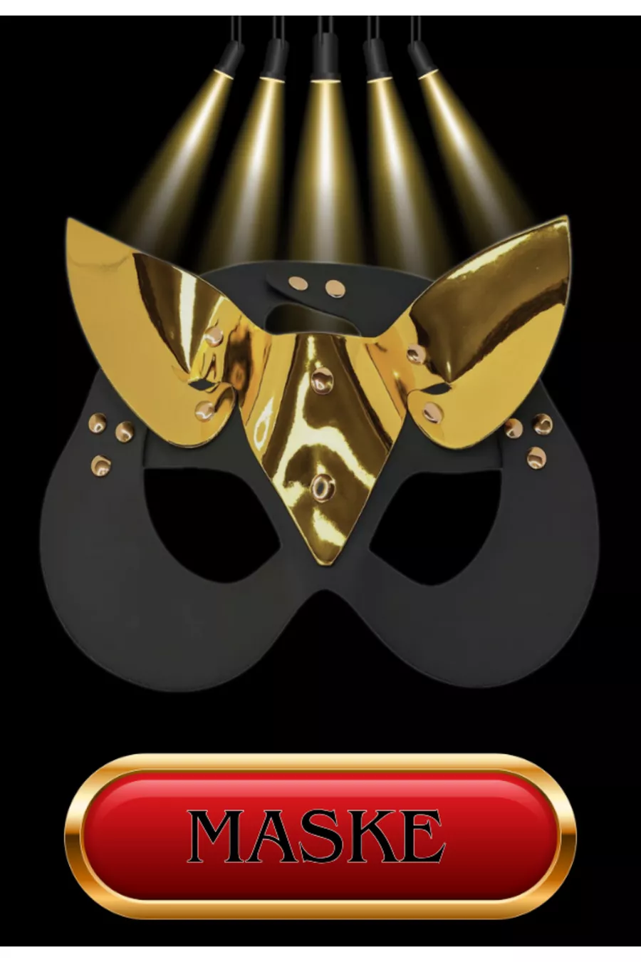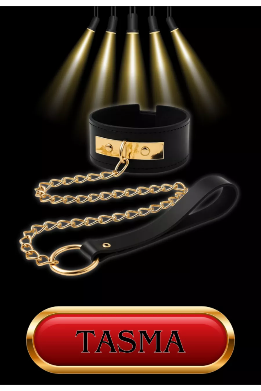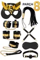 Fantasy Set with Whip, Collar, Plush Handcuffs, Mask 8-Piece Set Gold Belt