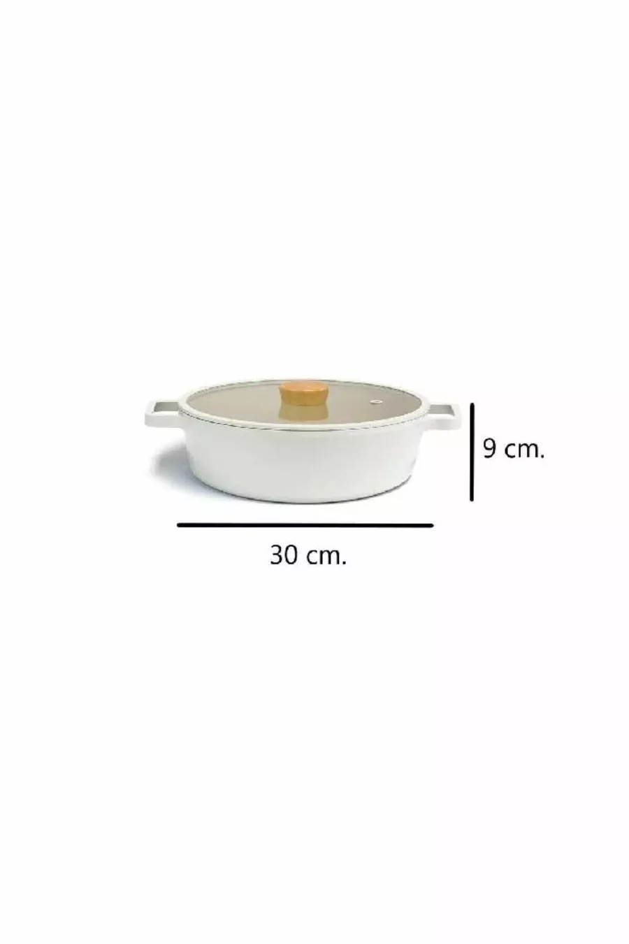 Color: Beige Size/Dimension: 30 cm Feature: Suitable for use on induction stove Outer Material: Ceramic Inner Material: Ceramic Number of Pieces: 4 Origin: KR Care Instructions (Food Contact): Safe for food contact. Material: Cast iron