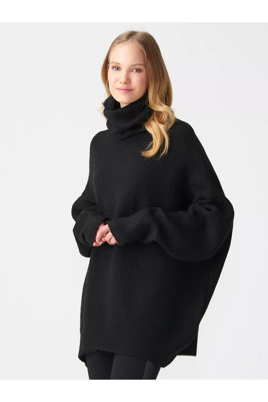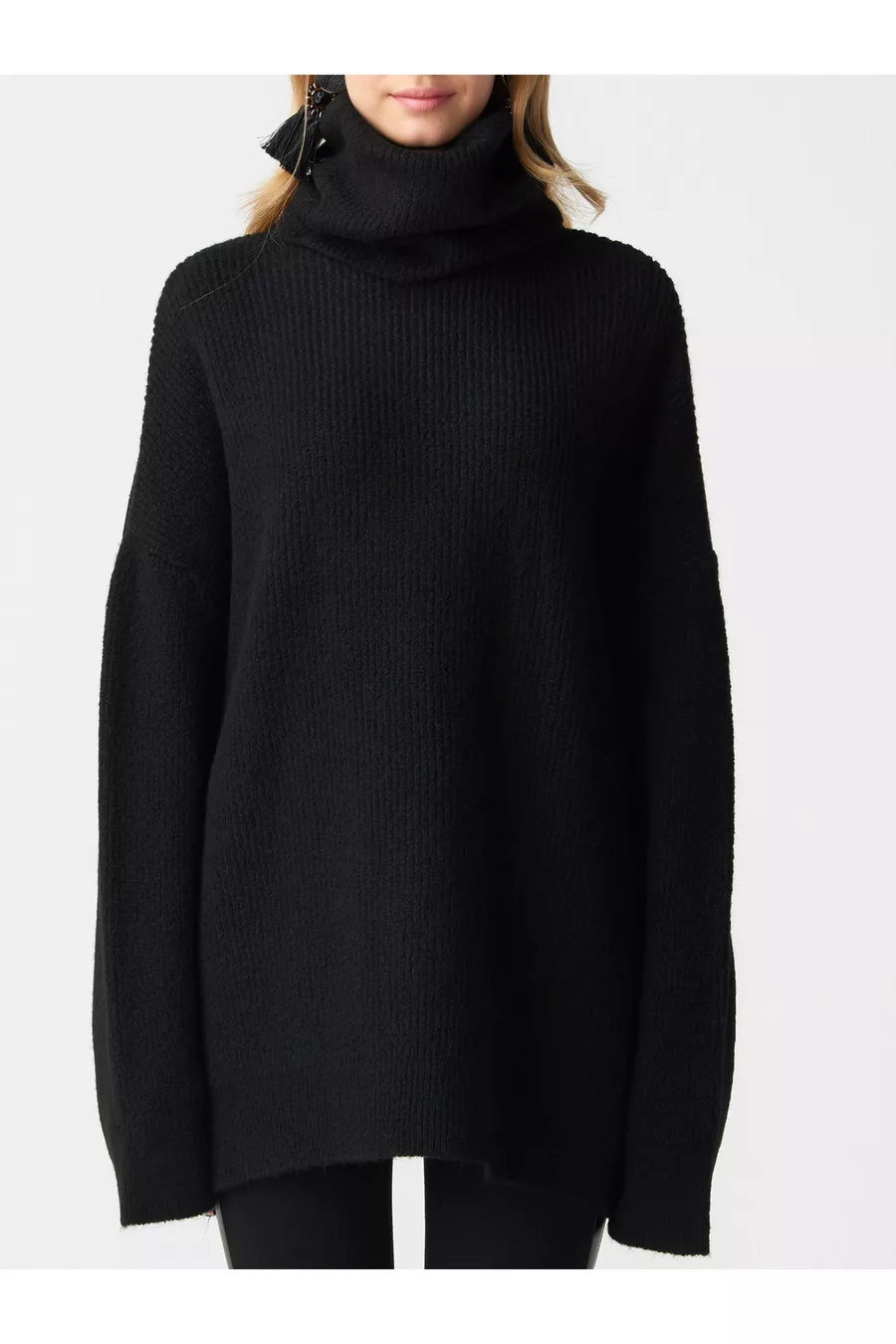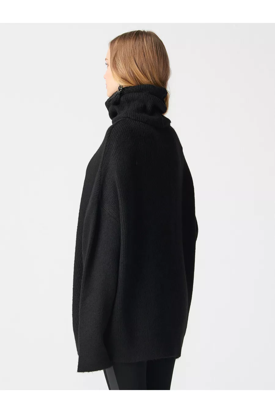 fisherman collar wide sweater black