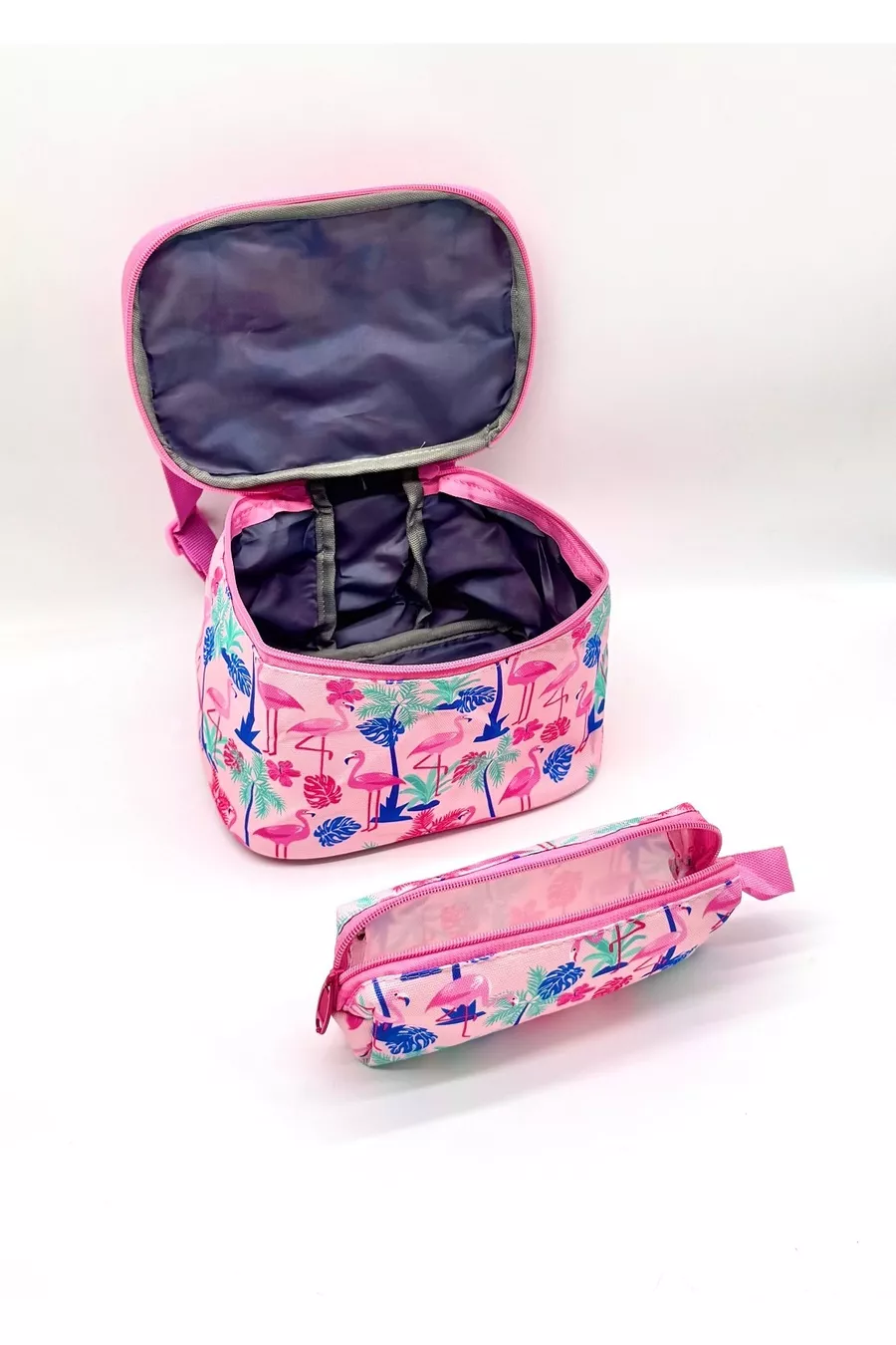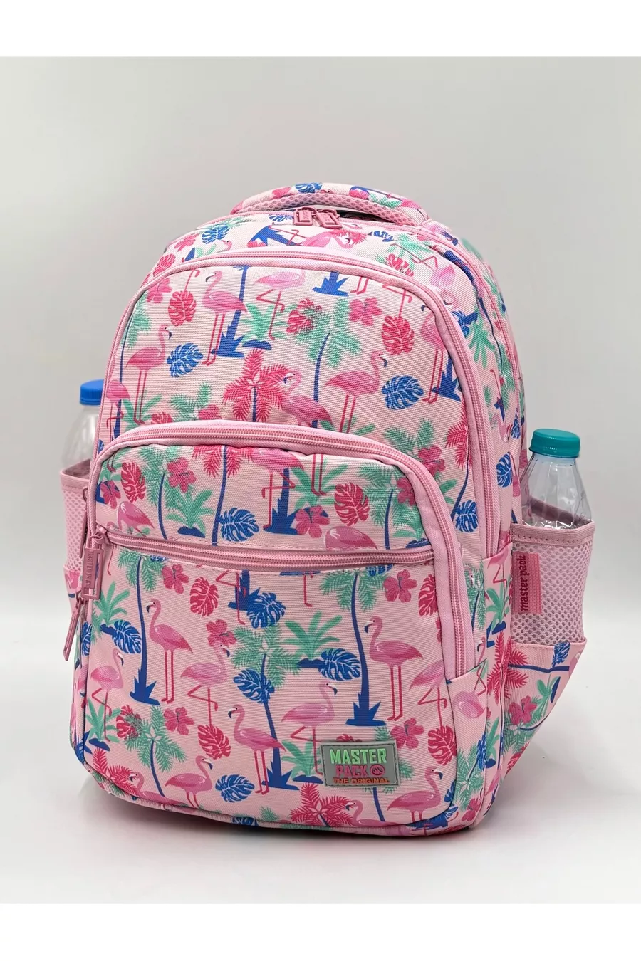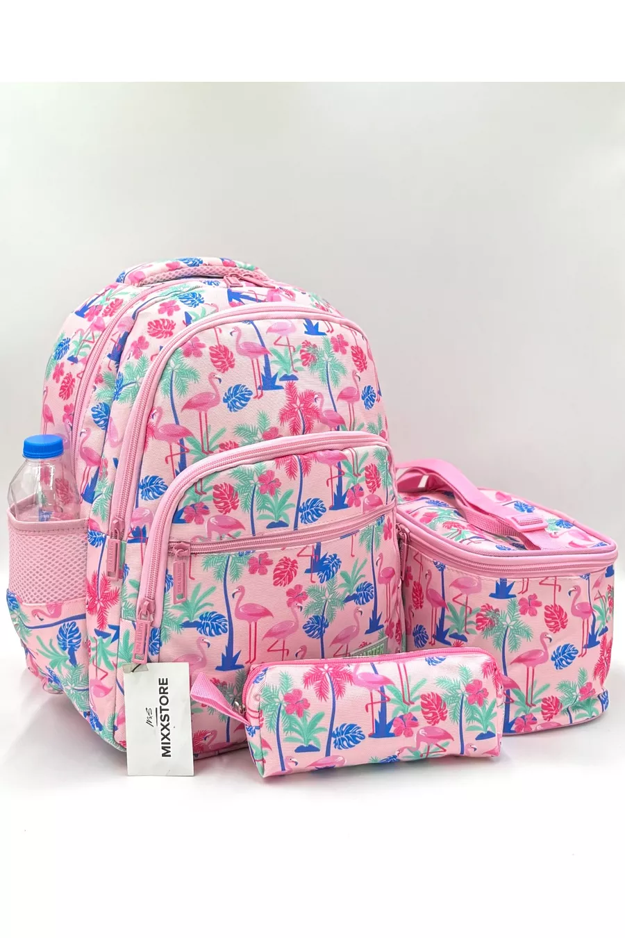 Flamingo Pattern Pink Master Pack Backpack with Lunch Box and Pencil Case for Girls' Elementary School