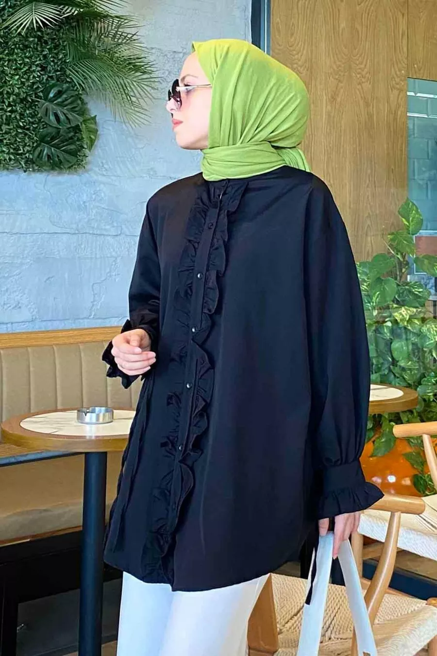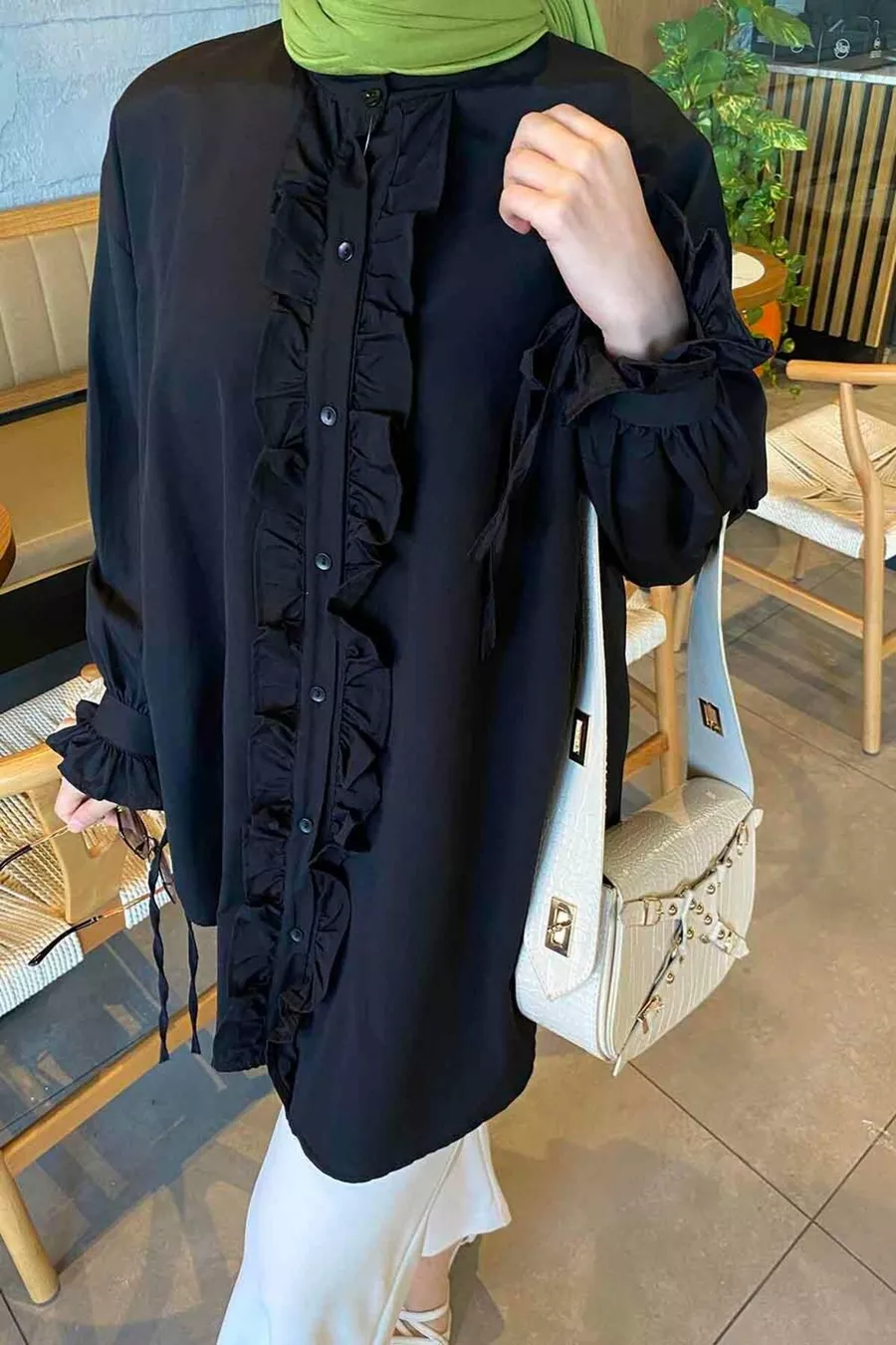 Material: Viscose Fabric Type: Woven Sleeve Type: Long Sleeve Pattern: Plain Fit: Oversize Neck Type: Stand Collar Color: Black Product Type: Plain Collection: Modest Fashion Product Detail: With Belt Pocket: No Pockets Sleeve Length: Long Occasion: Casual/Daily Weave Type: Viscose Supreme Length: Long Additional Feature: No Additional Feature Persona: Fashion Forward Washing Instructions: Type 1 Silhouette: Oversize Sustainability Detail: No Origin: TR Box Status: No Box