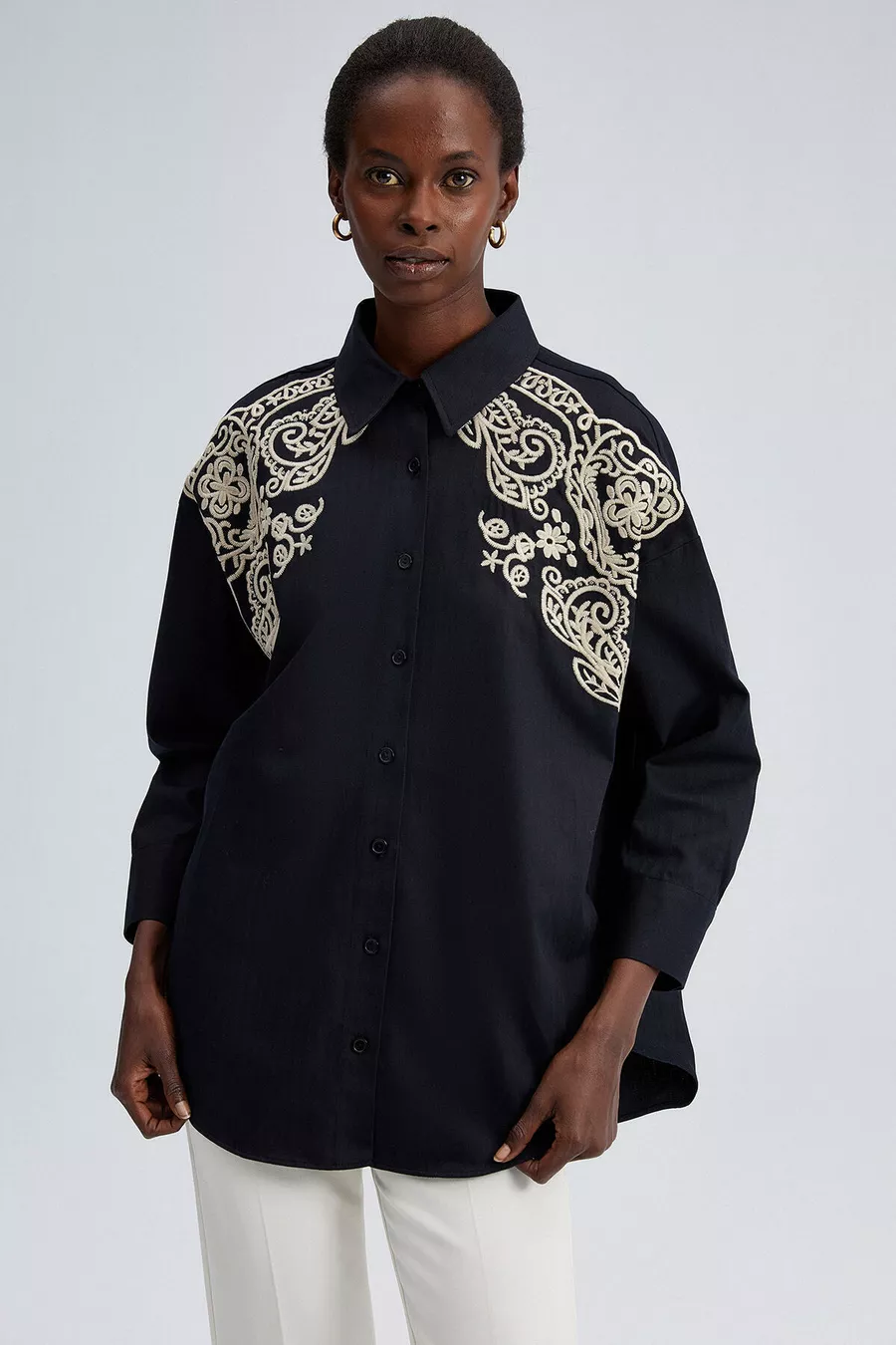 Collar Type: Shirt Collar Collection: Modest Clothing Fabric Type: Woven Sleeve Type: Standard Sleeve Pocket: No Pockets Pattern: Floral Fit: Oversize Color: Black Product Detail: Elastic Sleeve Length: Long Material: Polyester Weave Type: Micro Belt/Strap Status: Without Belt Occasion: Casual/Daily Persona: Cool & Comfort Closure Type: Buttoned Length: Standard Sustainability Detail: No Material Component: 100% Polyester/Cotton Washing Instructions: Type 1 Silhouette: Basic Origin: TR Box Status: No Box