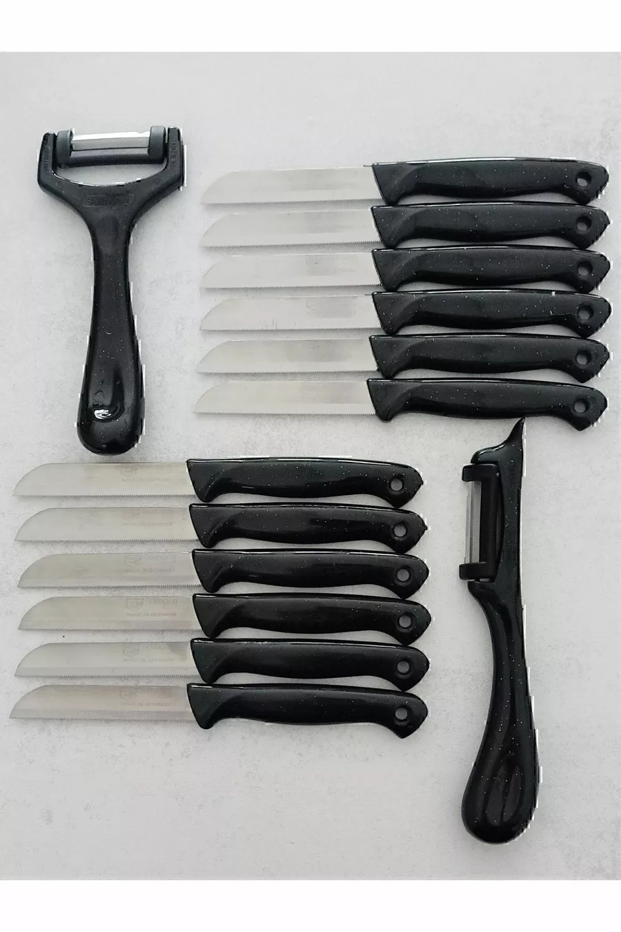 Fruit and Vegetable Chopping Knife and 2-Piece Peeler Set Black