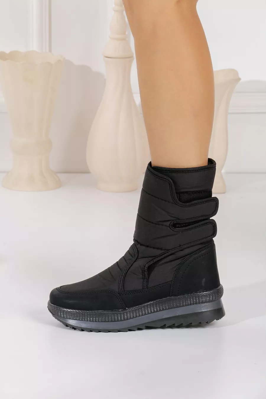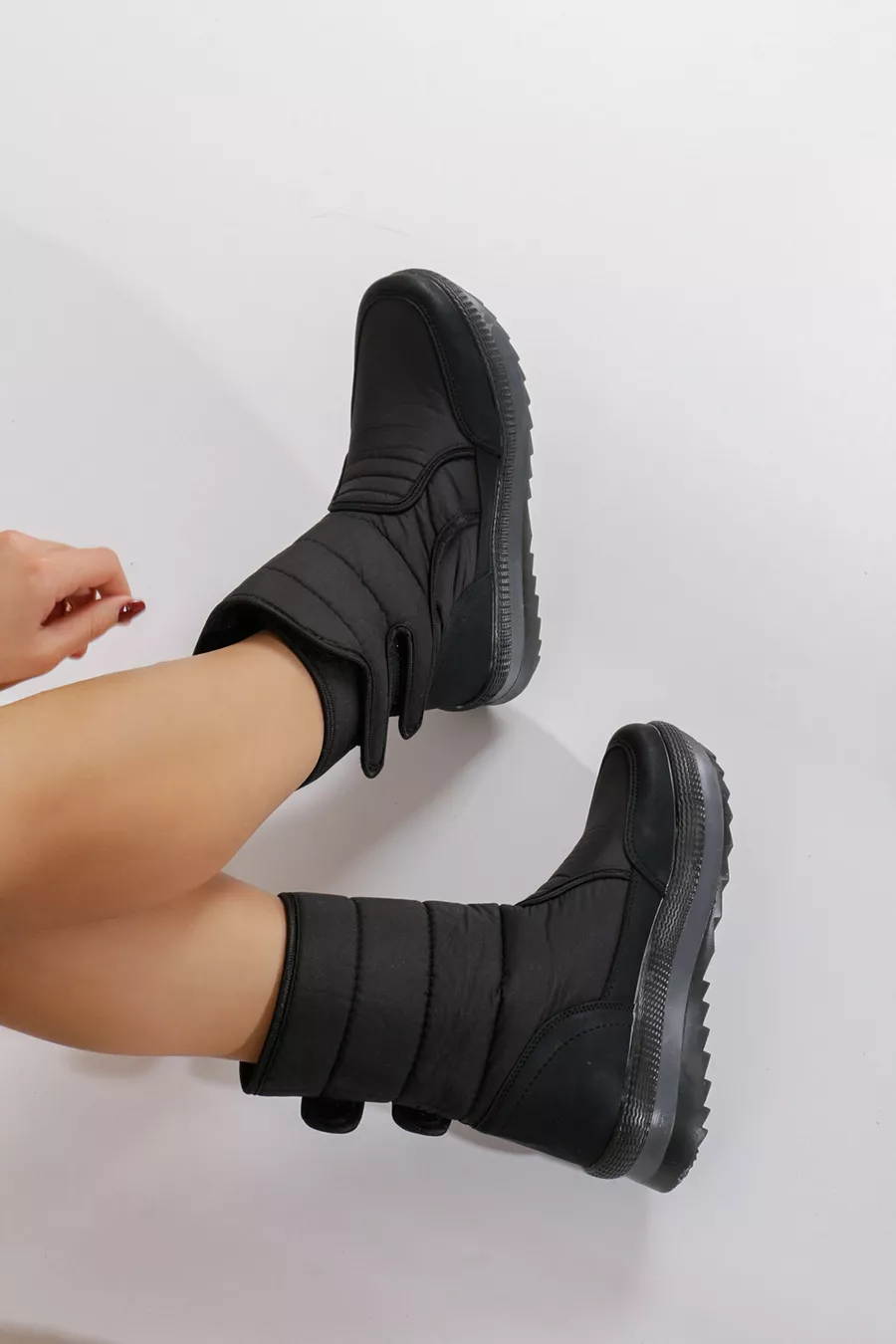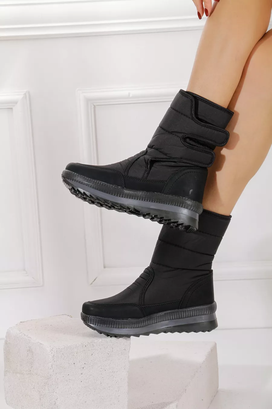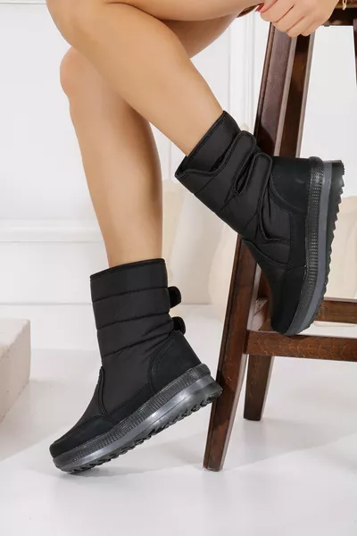 Closure Type: Strapped Material: Synthetic Leather Heel Type: Flat Heel Heel Height: Low Heel (1-4 cm) Color: Black Fabric Technology: Waterproof Sole Material: Thermoplastic Upper Material: Synthetic Leather Insole Material: Textile Lining Material: Synthetic Leather Material Composition: 100% Synthetic Leather Washing Instructions: Type 3 Pattern: Plain Fabric Type: Woven Collection: Sportswear Additional Feature: Thermal Sustainability Details: No Occasion: Casual / Everyday Origin: TR Outer Material: Plush