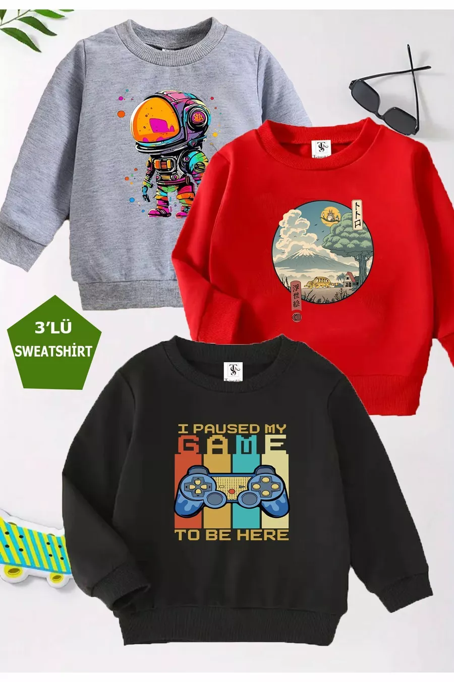Gaming Console Printed 3-Pack Unisex Black-Red-Grey Kids Sweatshirt
