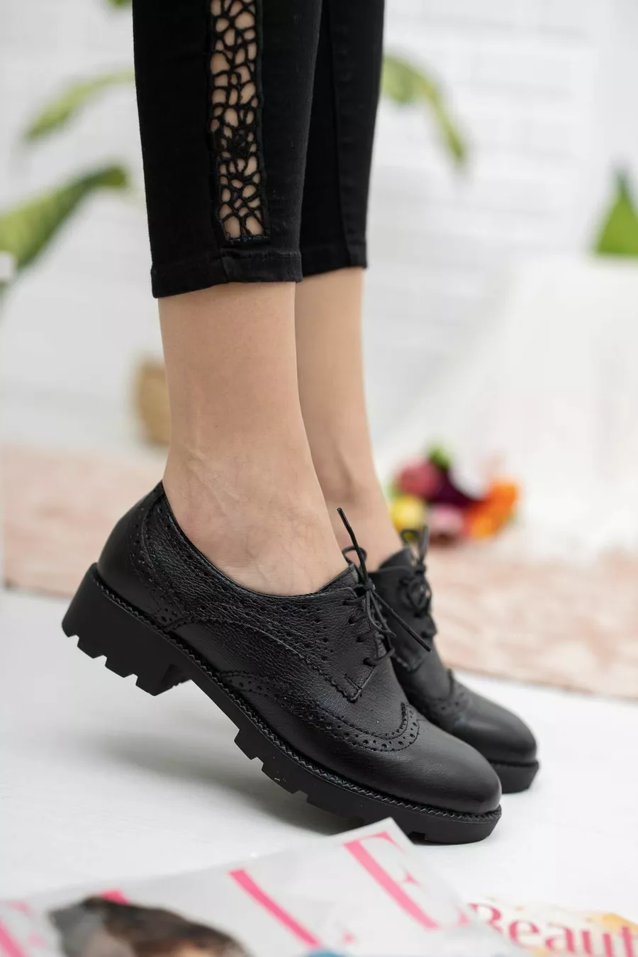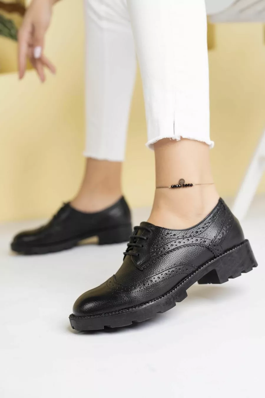 Upper Material: Genuine Leather Sole Material: Rubber Material: Genuine Leather Insole Material: Textile Color: Multicolor Heel Height: Low Heel (1-4 cm) Lining Material: Textile Closure Type: Lace-Up Material Composition: Genuine Leather Washing Instructions: No Heel Type: Block Heel Pattern: Plain Fabric Type: Not Specified Collection: Business Additional Feature: No Additional Feature Sustainability Detail: Yes Occasion: Daily Country of Origin: TR Outer Material: Genuine Leather