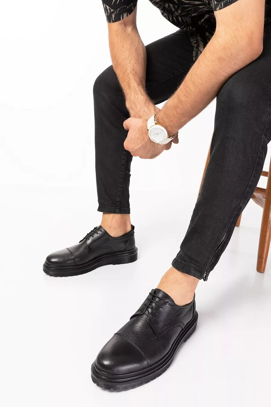 Additional Feature: Orthopedic Insole Material: Polyurethane Lining Material: Genuine Leather Color: Black Sole Material: Poly Upper Material: Genuine Leather Heel Height: Low Heel (1-4 cm) Insole Material: Genuine Leather Closure Type: Lace-Up Persona: Fashion Forward Sustainability Detail: No Heel Type: Flat Heel Material Composition: 100% Genuine Leather Washing Instructions: Do not wash, wipe clean. Pattern: Plain Occasion: Business Country of Origin: TR Box Condition: Boxed Outer Material: Genuine Leather