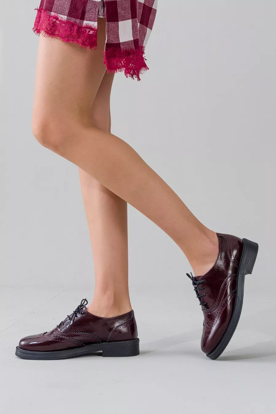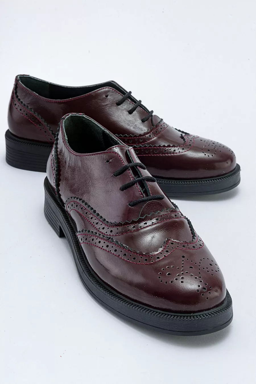 Genuine Patent Leather Burgundy Women's Shoes Oxford