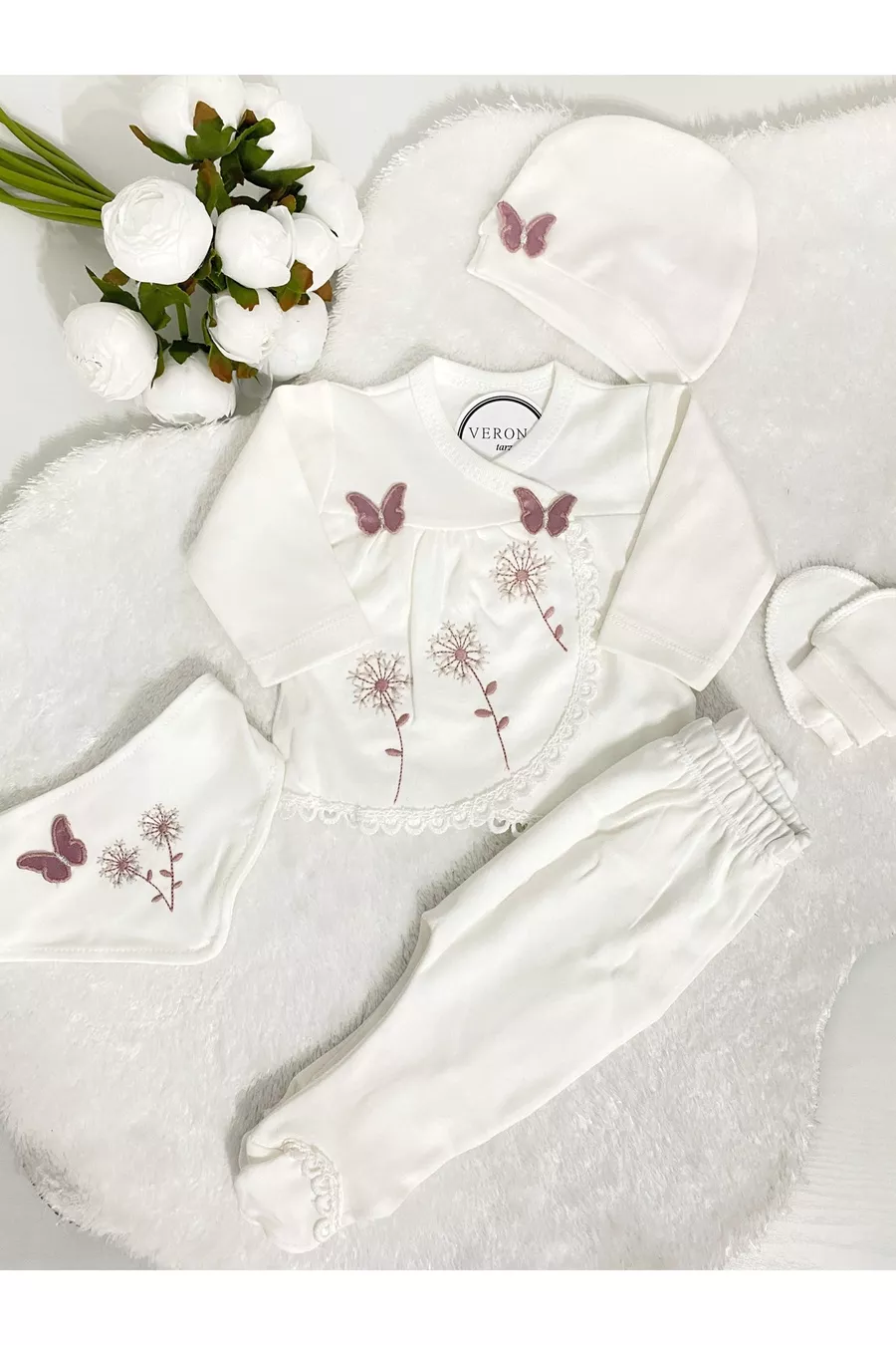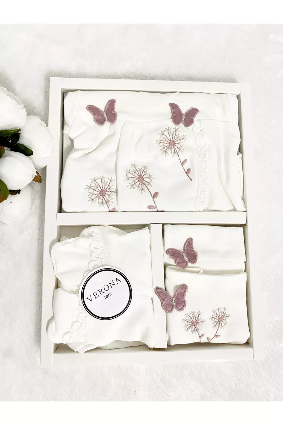 Gift Box Baby Girl 5-Piece Organic Hospital Set with Butterfly Embroidery, Newborn Outfit cm 0-3 Months