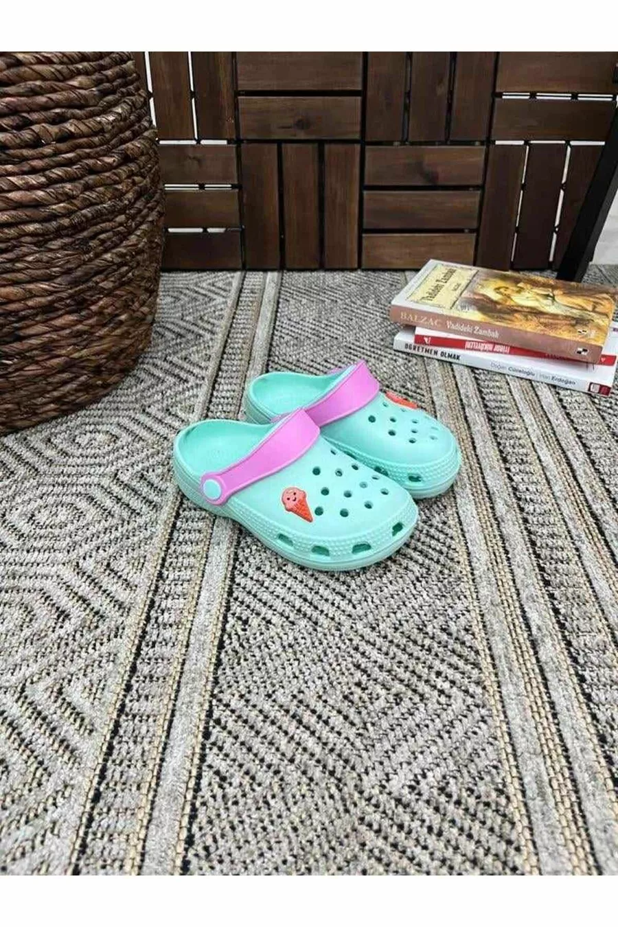 Girls Boys Kids 2 Pieces Cross Jibbitz Fancy Gift Closed Front Garden Pool Casual Sandals Slippers