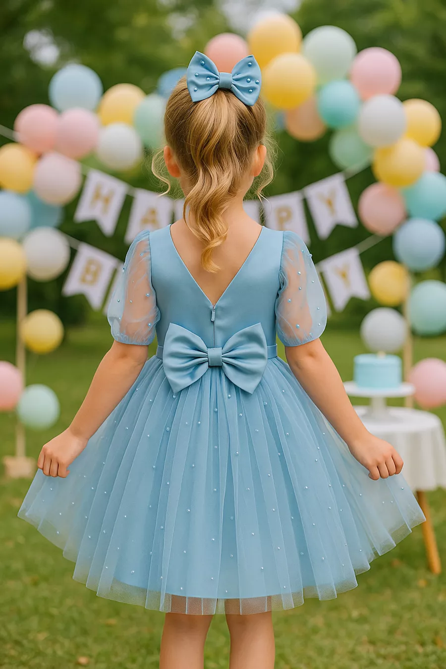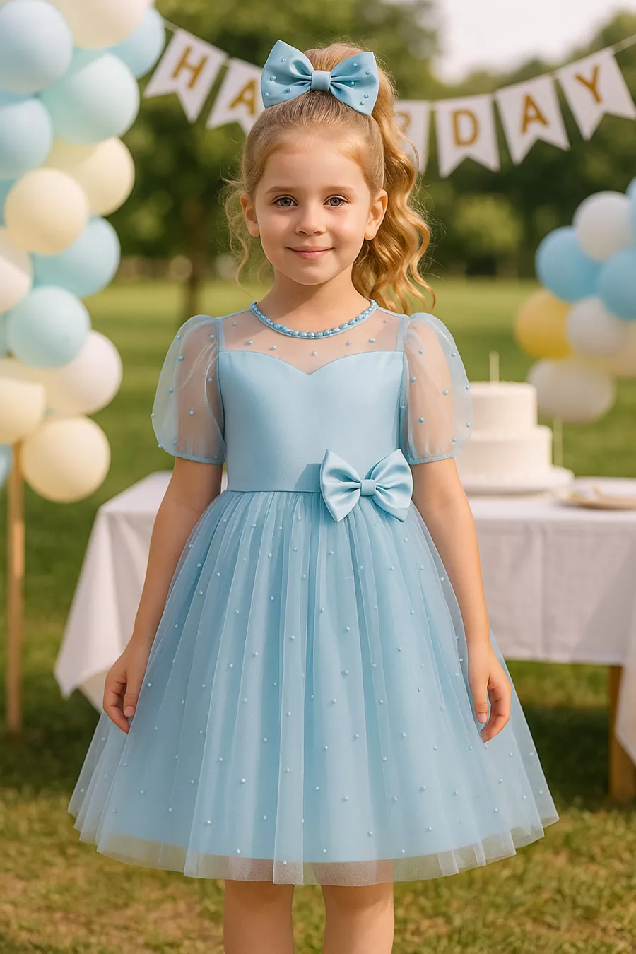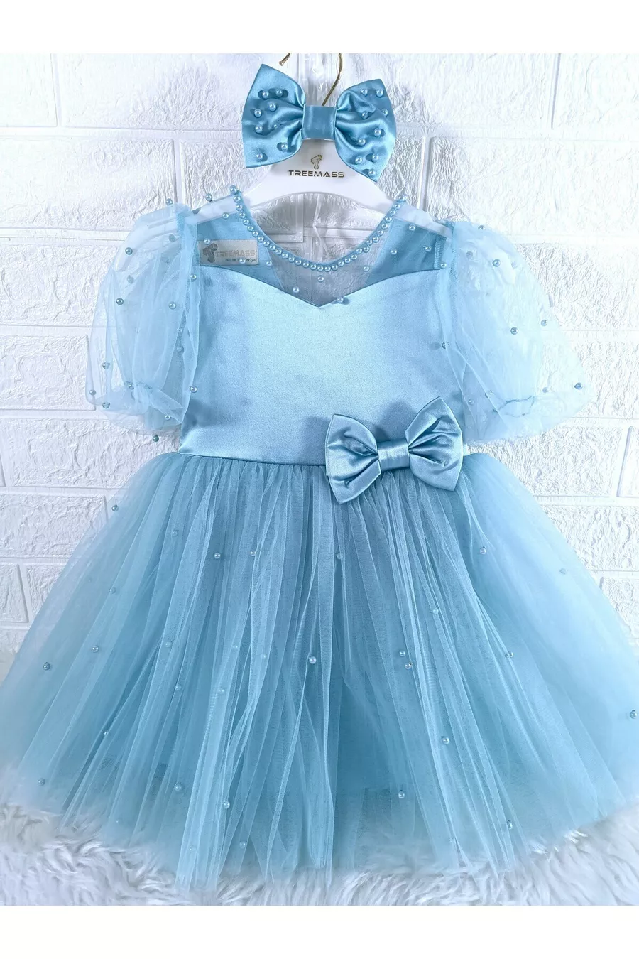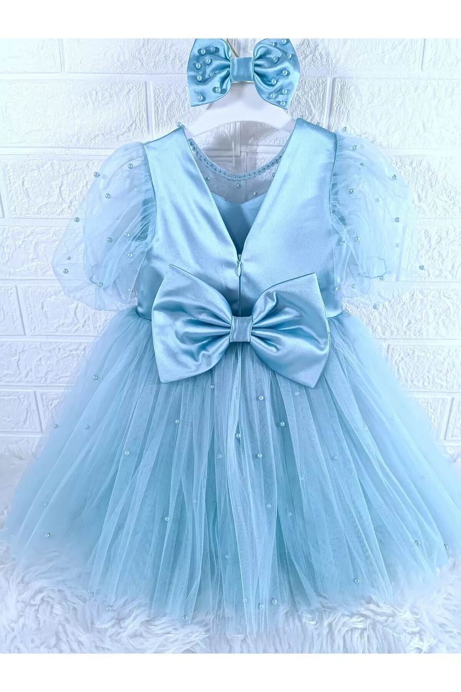 Girls' Party Dress Tulle Satin with Pearls for Wedding and Birthday