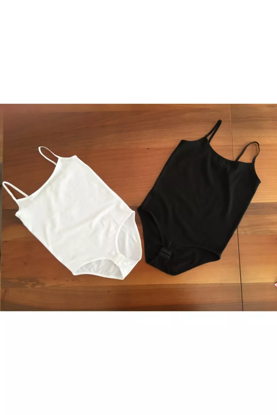 Girls' Tank Top Bodysuit with Snaps, 2 White and 2 Black, Spaghetti Straps, Ages , Pack of 4
