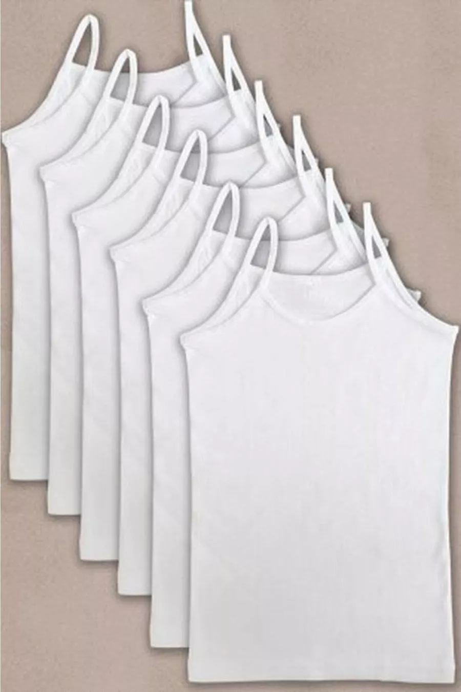 Girls' White Cotton Jersey 6-Pack Tank Top with Straps