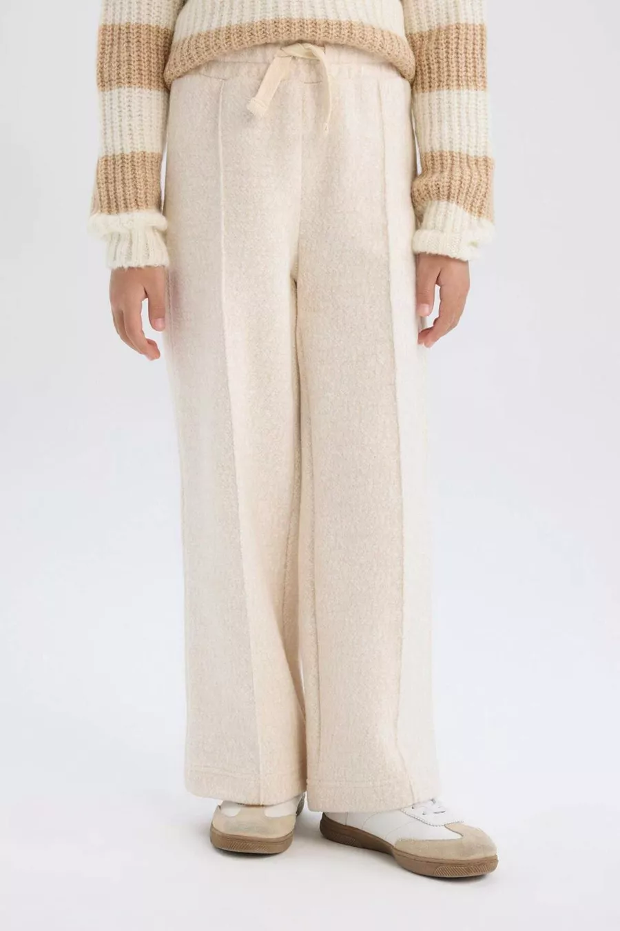 Fabric Feature: Does Not Hold Lint Fit: Regular Leg Style: Wide Leg Leg Length: Long Material: Cotton Color: Beige Waist: Elastic Pocket: Double Pocket Pattern: Plain Product Type: Plain Length: Standard Occasion: Casual Silhouette: Wide Leg Fabric Type: Knit Additional Feature: Elastic Waist Weaving Type: 2-Ply Sustainability Detail: No Material Composition: 71% Cotton, 29% Polyester Washing Instructions: T01 Origin: TR Box Condition: No Box