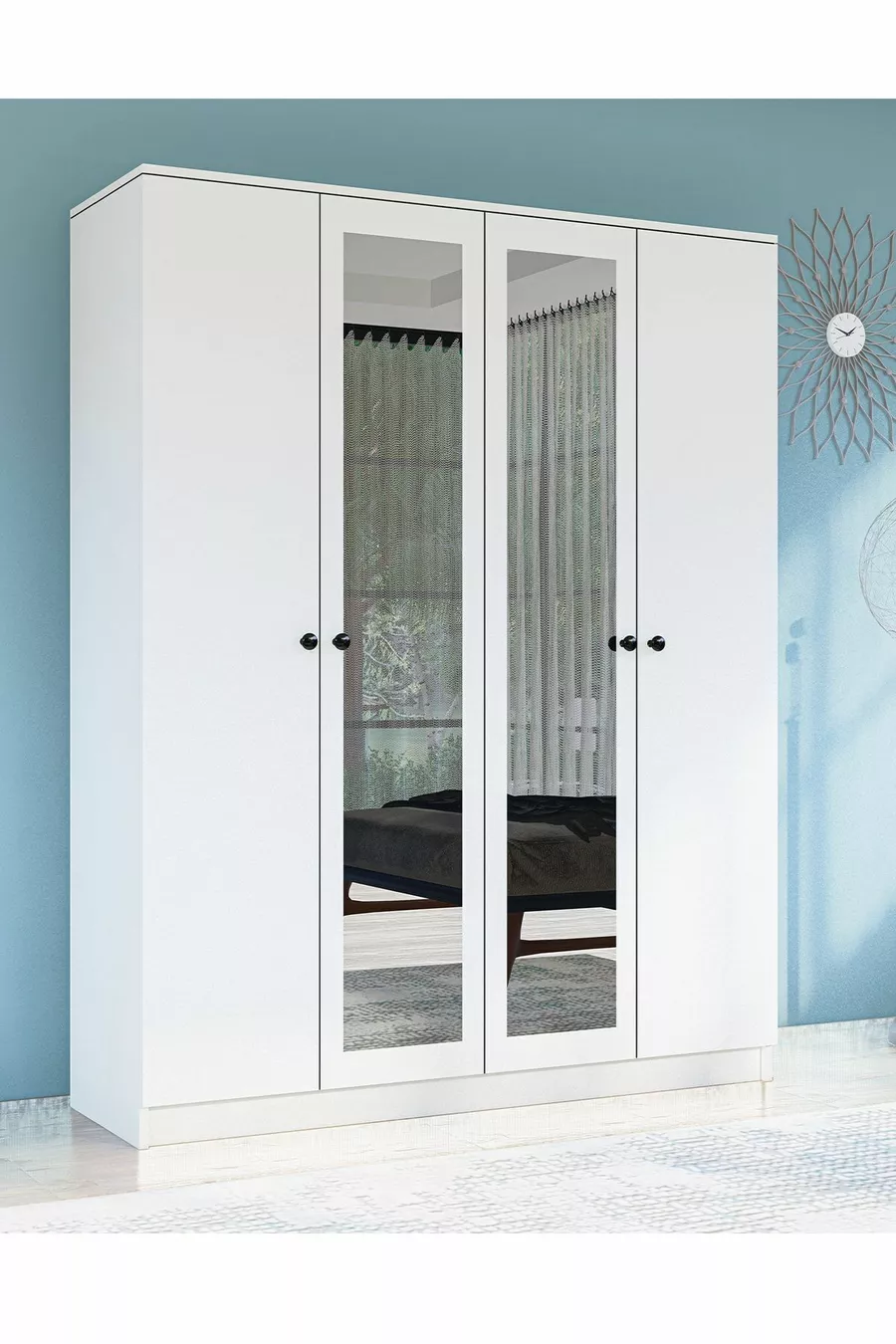 Function: With Cover Color: White Width: 120 cm Depth: 43 cm Number of Covers: 4 Body Material: Chipboard Mirror Function: Mirrored Warranty Period: 2 Years Style: Modern Theme / Style: Modern Origin: TR Feature: Mirrored