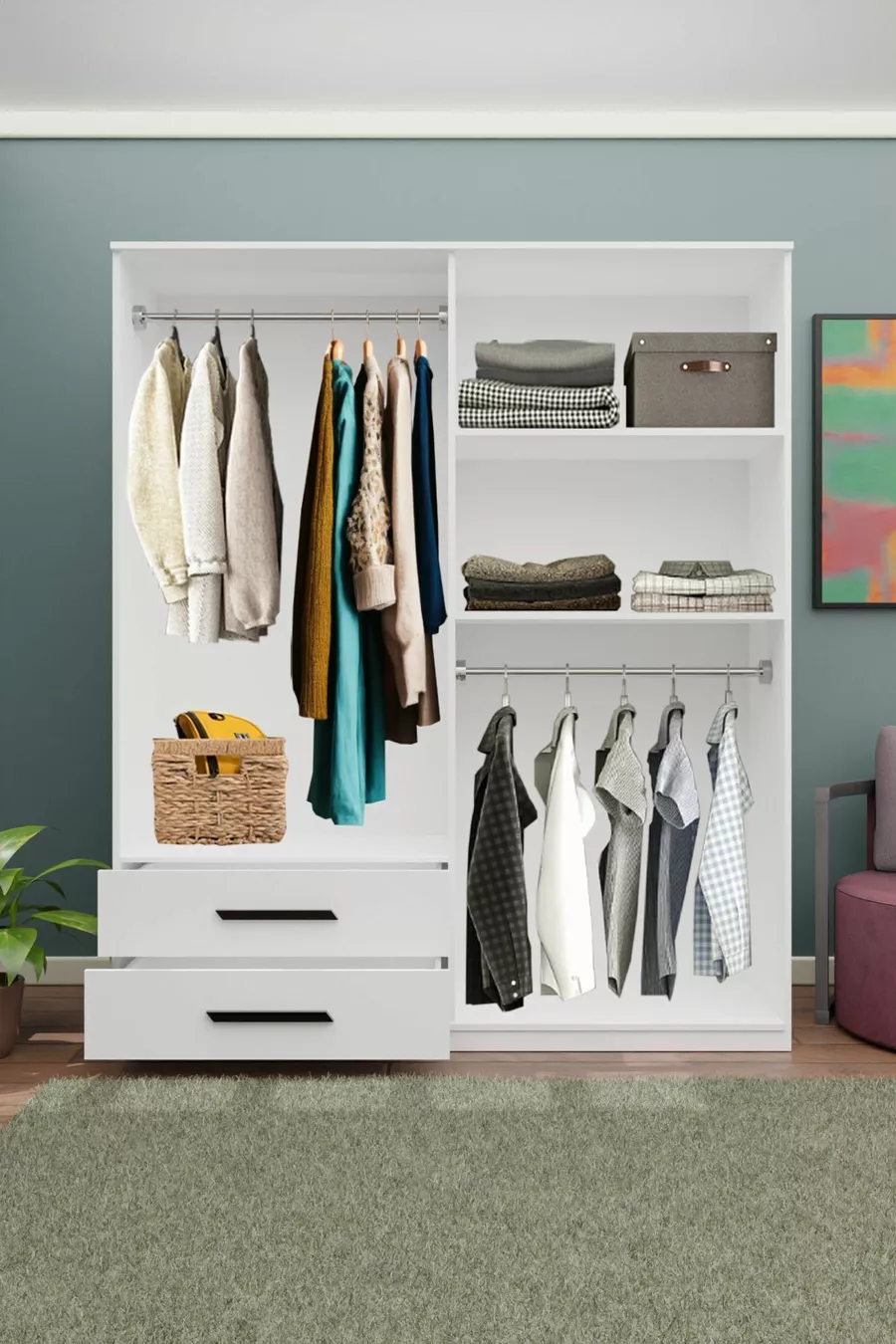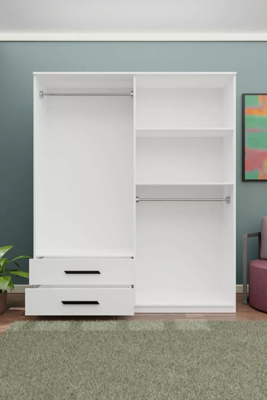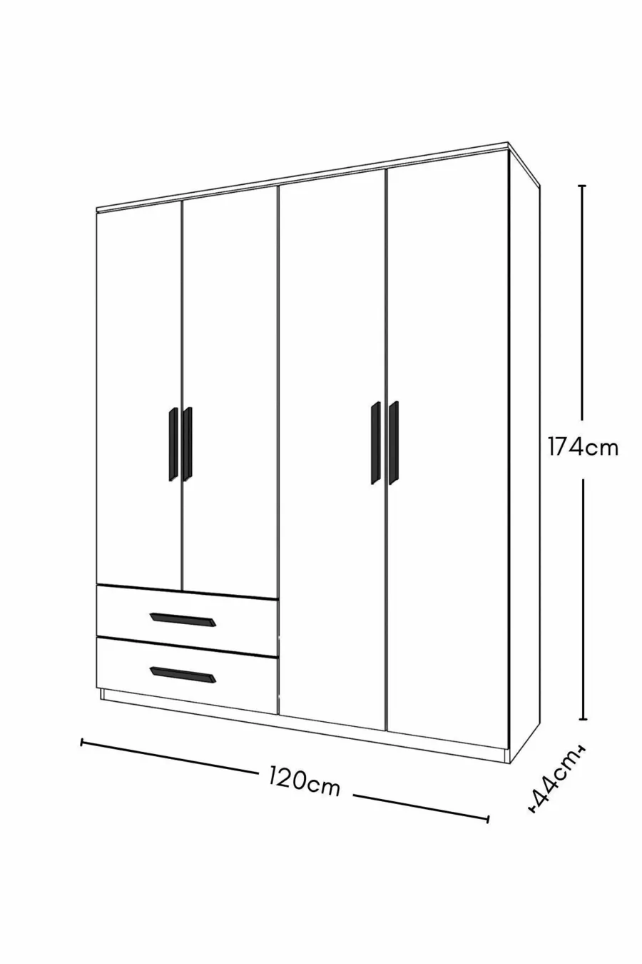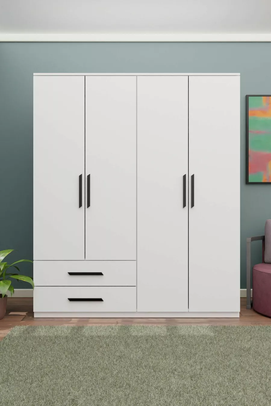 GM DORA 4-Door 2-Drawer Wardrobe with Black Handles