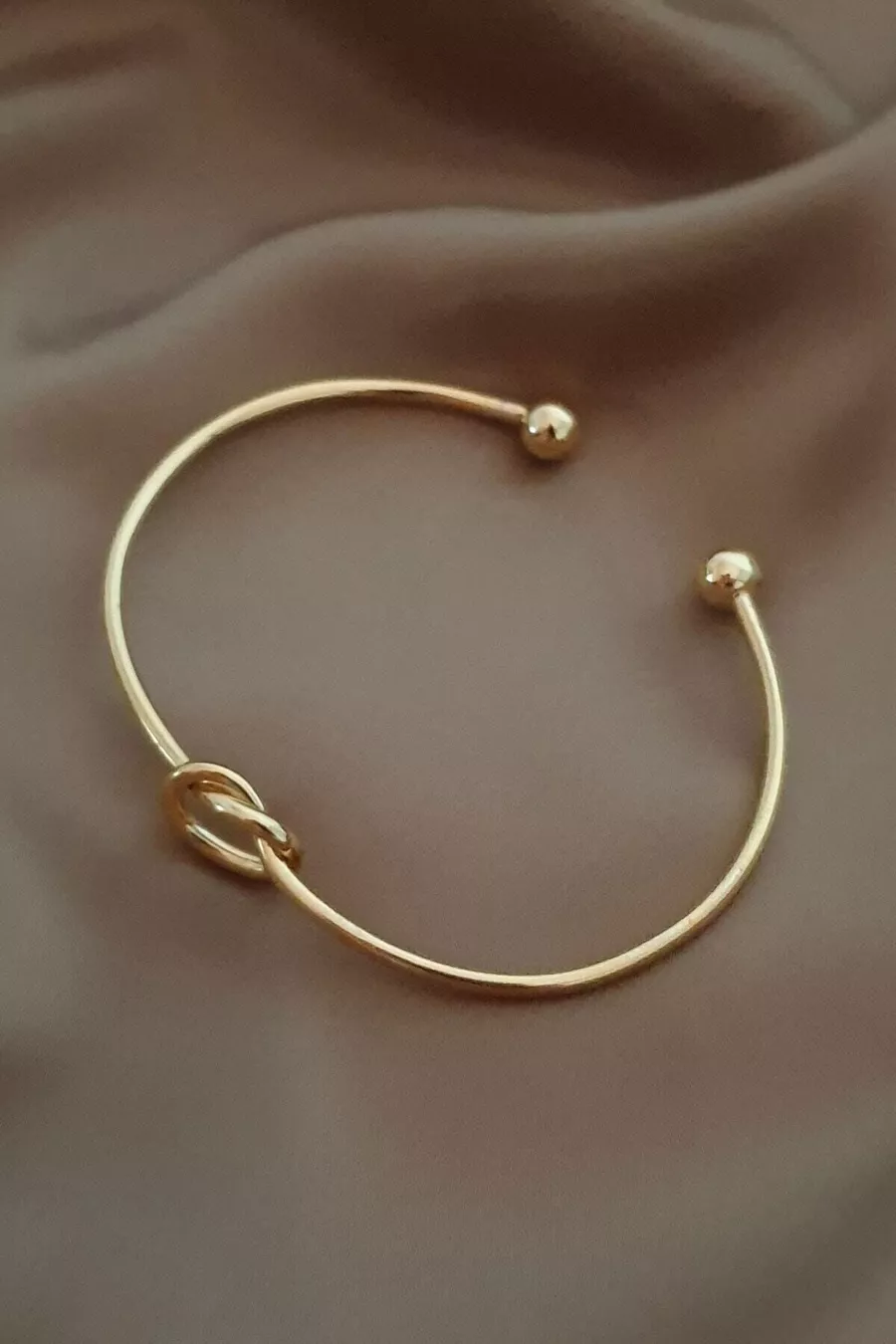 Gold Color Women's Bracelet with Gold Knot Detail and Adjustable Cuff