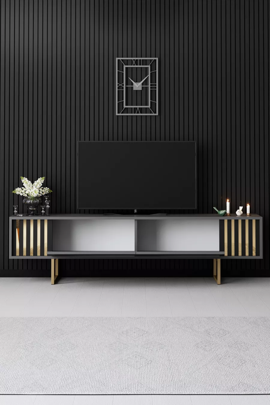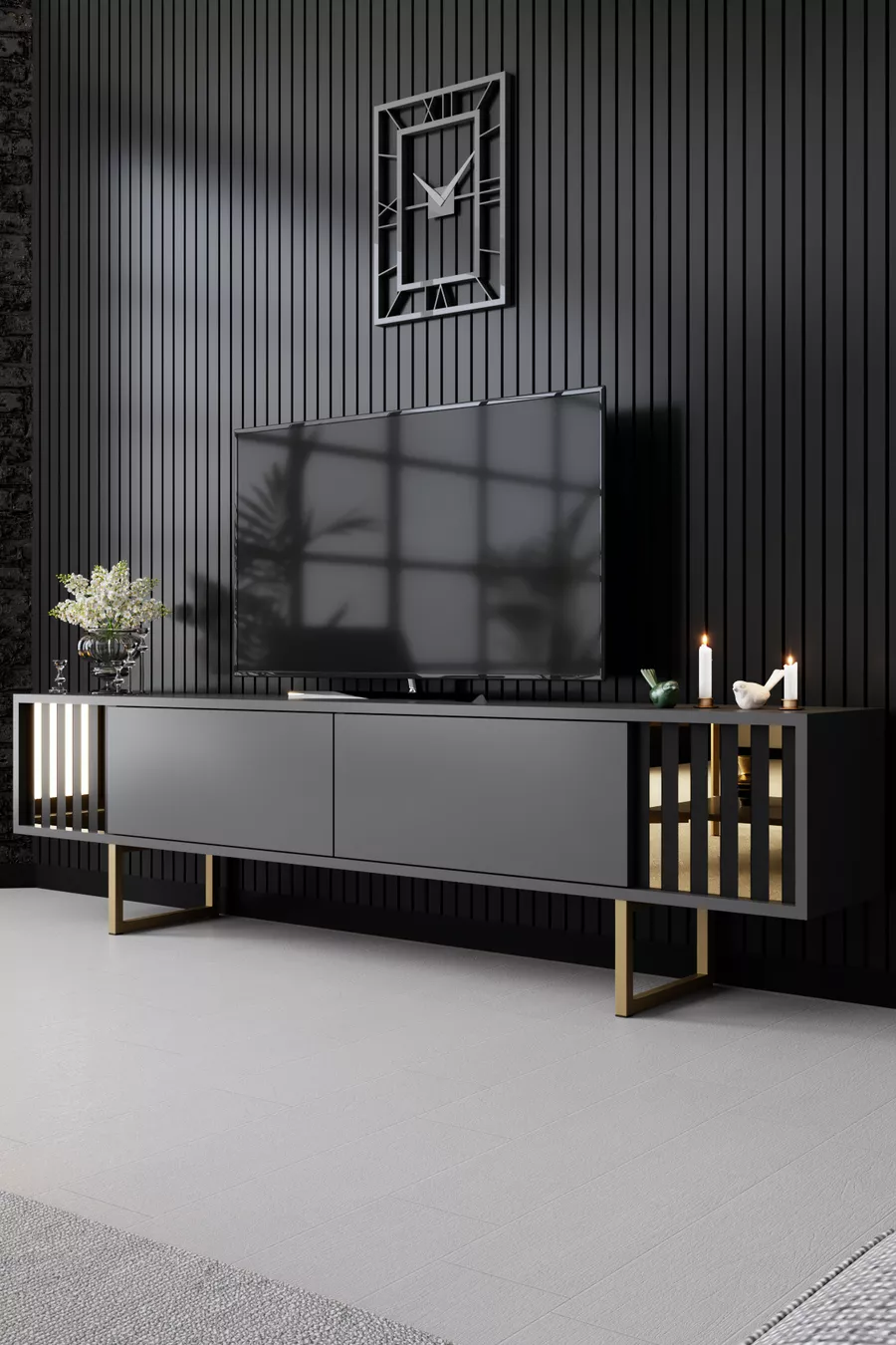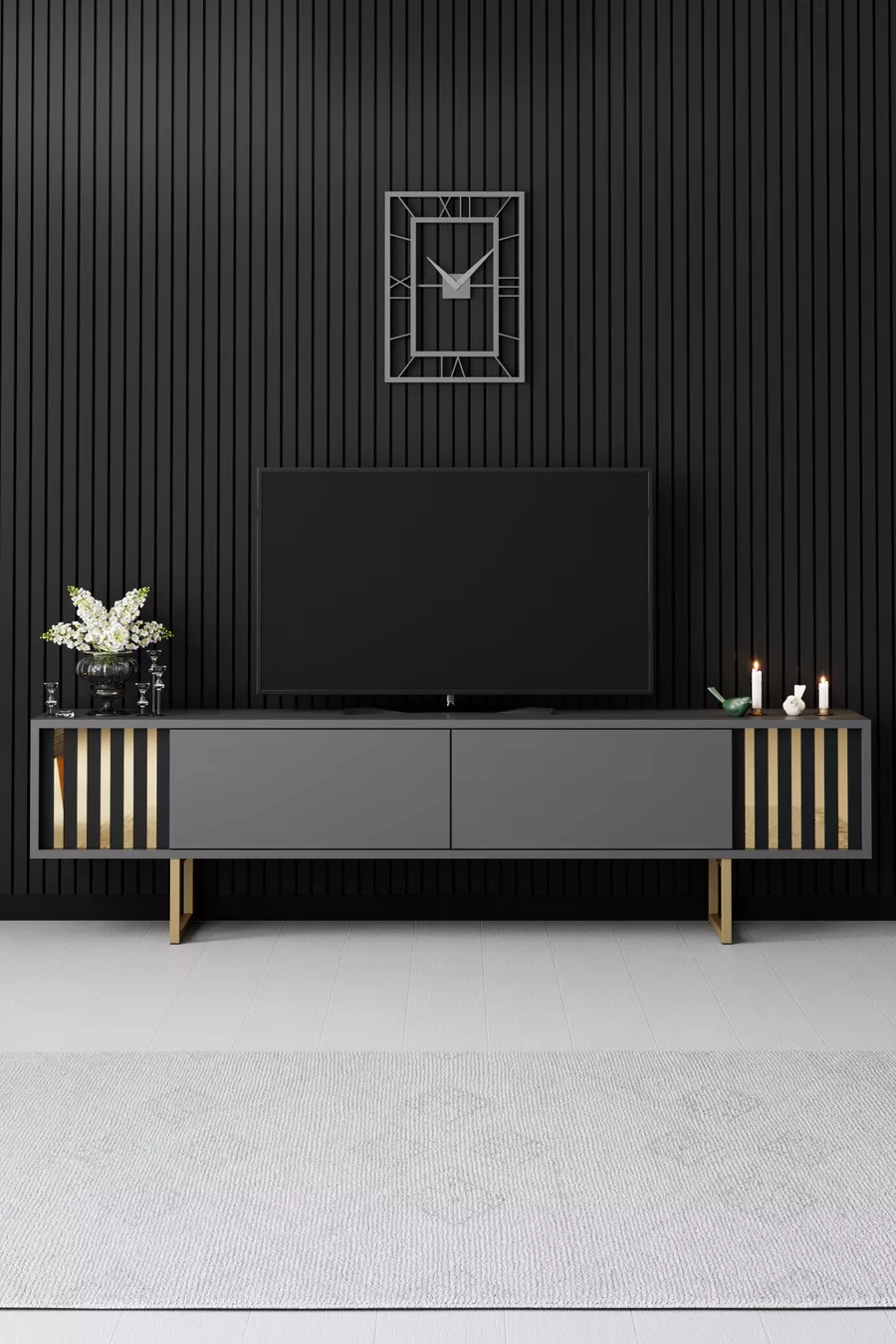 Material: Chipboard Feature: With cabinet Color: Gray Height: 48 cm Width: 180 cm Depth: 30 cm Warranty Period: 2 Years Style: Modern Theme / Style: Modern