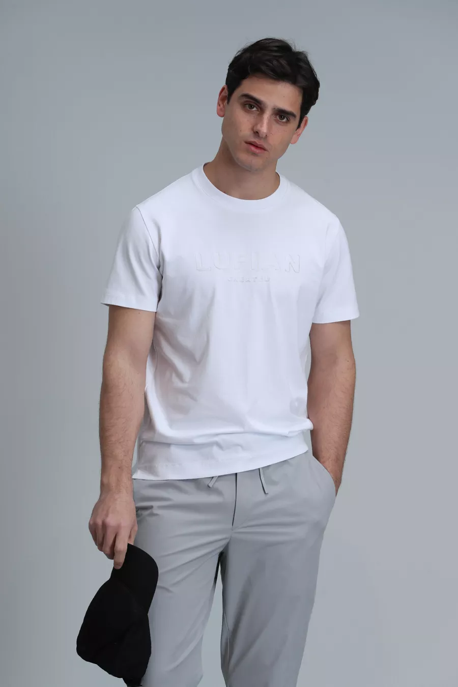 Pattern: Geometric Fit: Regular Neck Type: Crew Neck Material: Elastane Fabric Type: Knit Sleeve Type: Short Sleeve Color: White Package Contents: Single Technique: None Pocket: Pocketless Sleeve Length: Short Collection: Menswear Length: Standard Occasion: Casual/Daily Additional Feature: No Additional Feature Print/Embroidery Technique: No Print Sustainability Detail: No Weave Type: Suprem Silhouette: Regular Persona: Smart Washing Instructions: Type 1 Season: Summer Origin: TR Box Condition: No Box