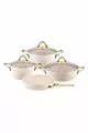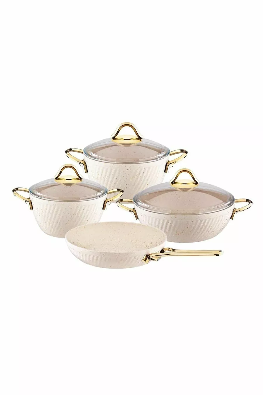 Color: Beige Size/Dimension: 26 cm Feature: Non-stick Base Exterior Material: Granite Interior Material: Granite Number of Pieces: 7 Origin: TR Care Instructions (Food Contact): Dishwasher safe. Food Contact Symbol: Yes Material: Cast