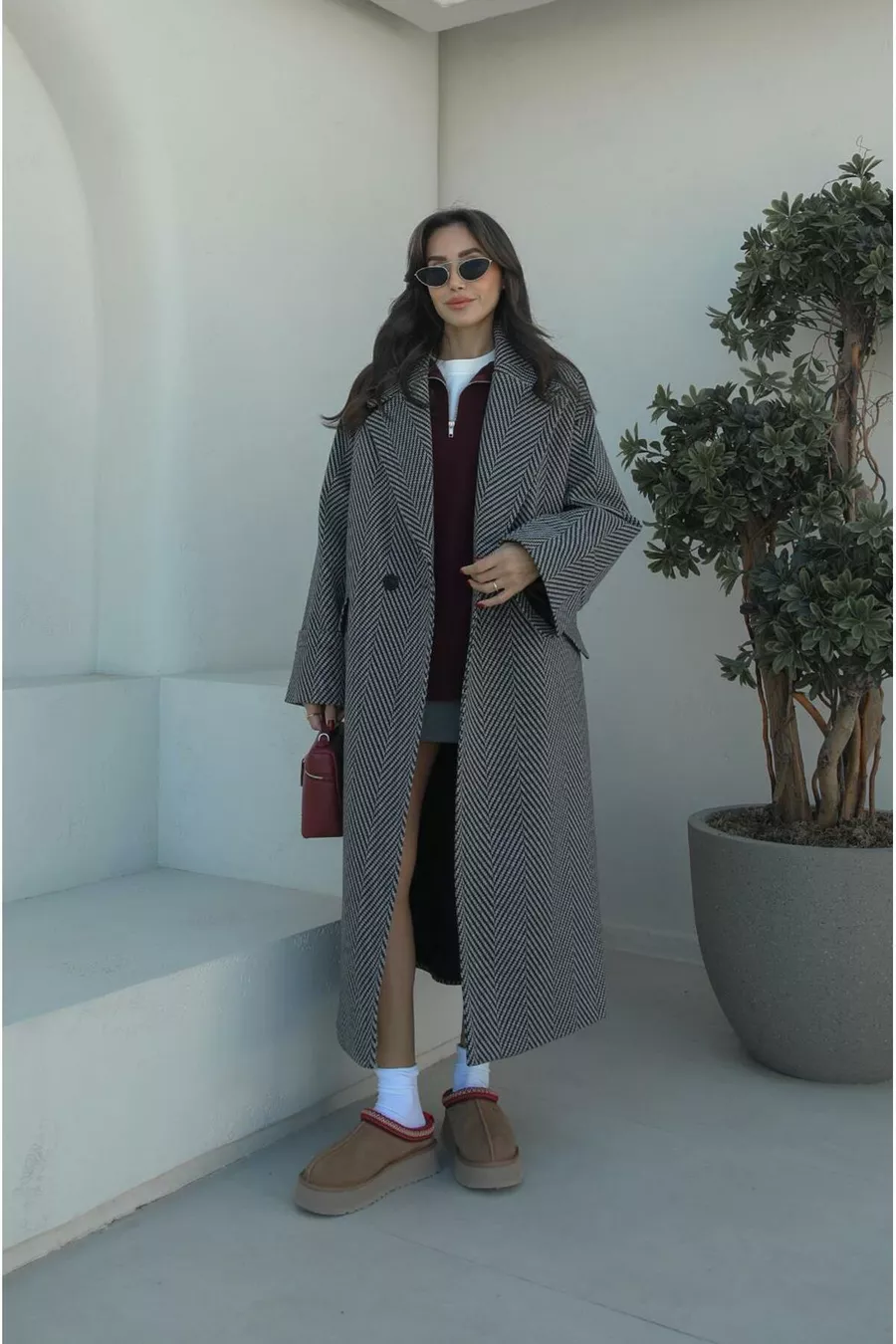 Fit: Oversize Fabric Type: Woven Color: Black Collar Type: Jacket Collar Pattern: Solid Product Detail: Buttoned Product Type: Solid Pocket: Double Pocket Lining: Lined Length: Long Silhouette: Basic Occasion: Casual/Daily Collection: Basic Sleeve Length: Long Sleeve Type: Standard Sleeve Persona: Cool & Comfort Closure Type: Buttoned Print/Embroidery Technique: No Print Filling Material: Polyester Belt/Strap: Without Belt Material: Woolen Material Composition: 78% Wool, 22% Cotton Weaving Type: Herringbone Washing Instructions: Type 2 Origin: TR Package Contents: Single